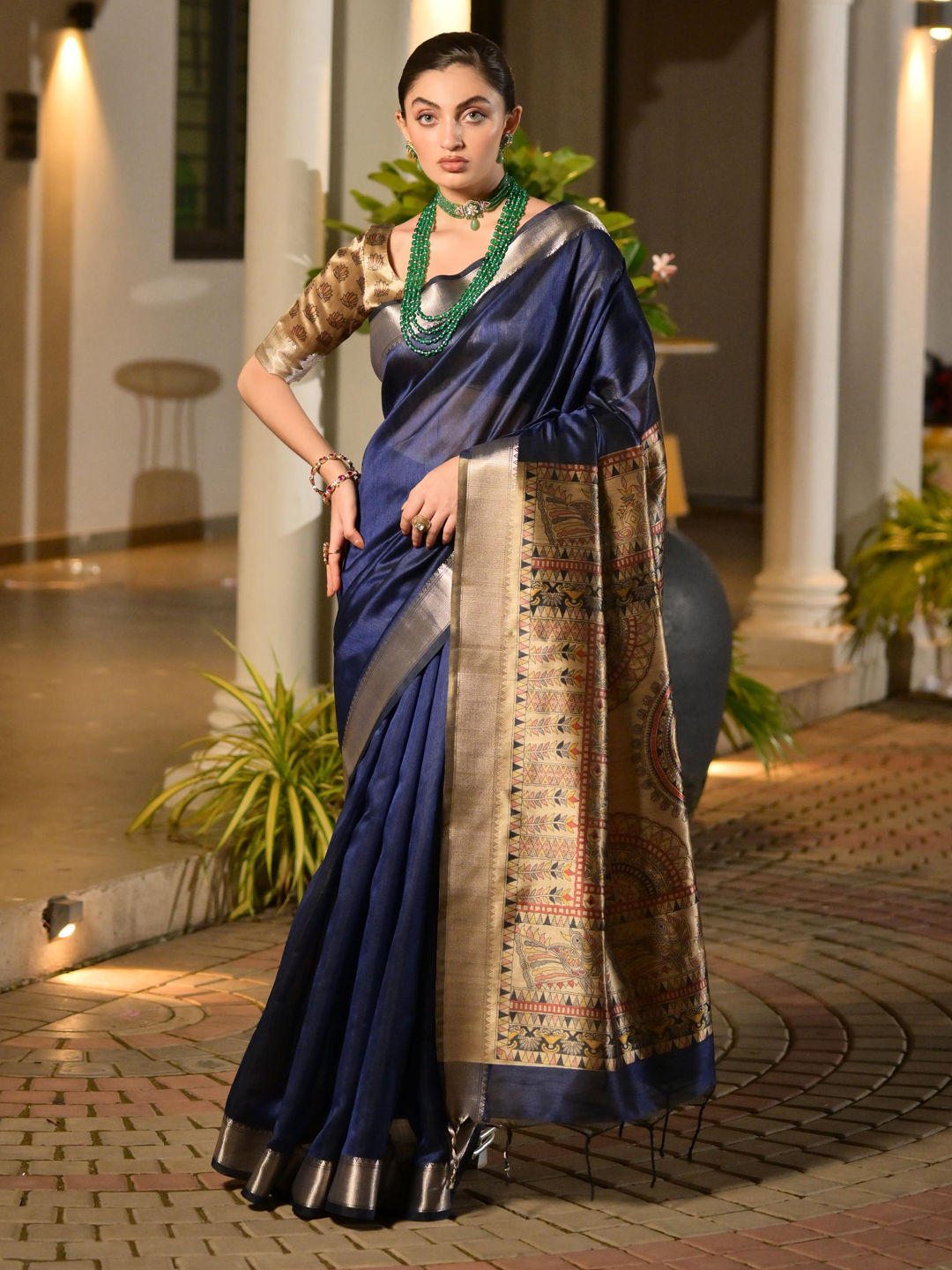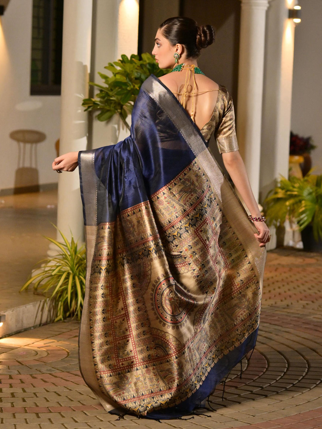 Raw Silk Festive Saree in Beige and Brown with Weaving work