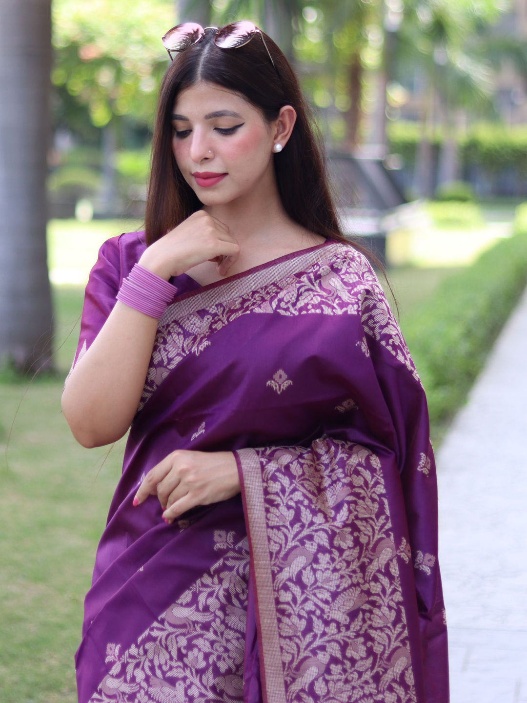 in Purple and Violet with Weaving work