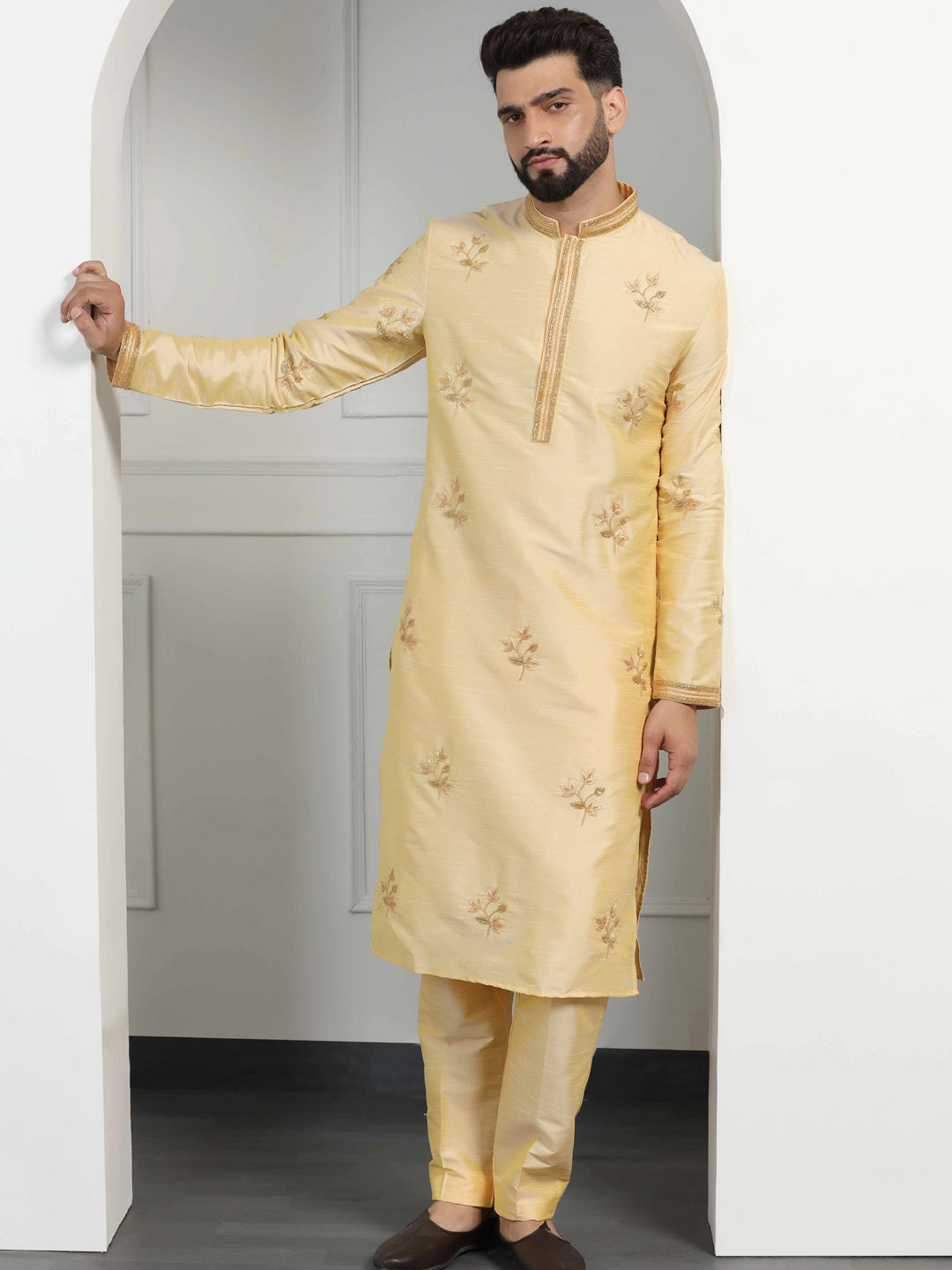 in Yellow with Embroidered work