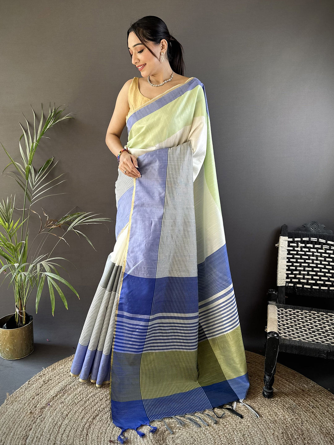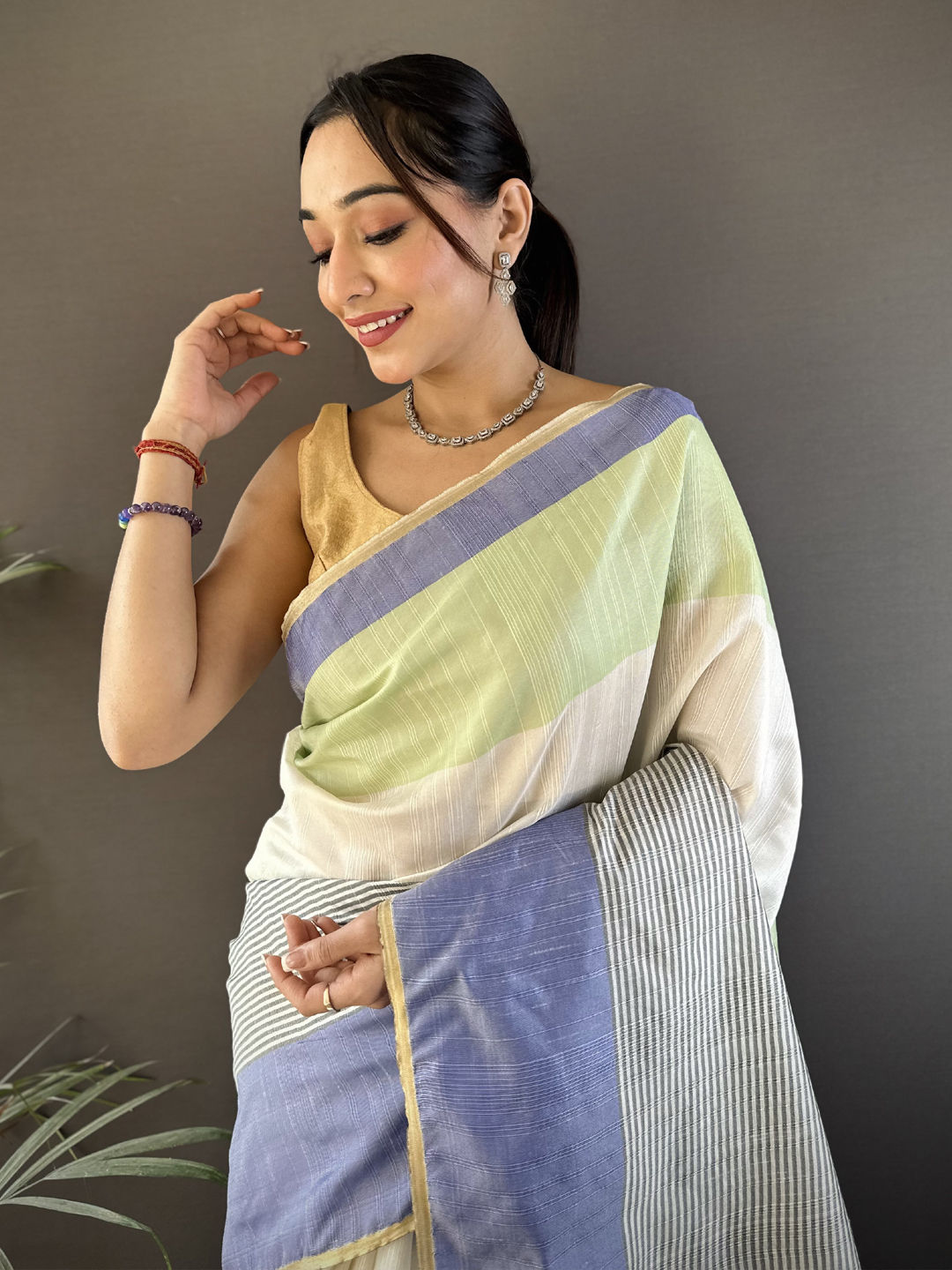 Raw Silk Party Wear Saree in Blue with Weaving work