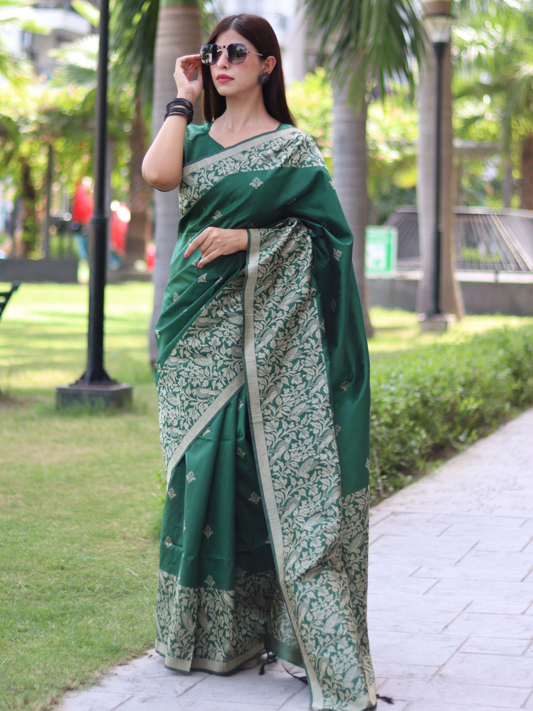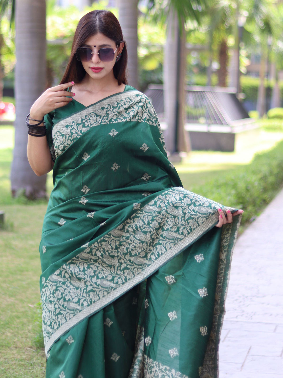 Raw Silk Festive Saree in Black and Grey with Weaving work