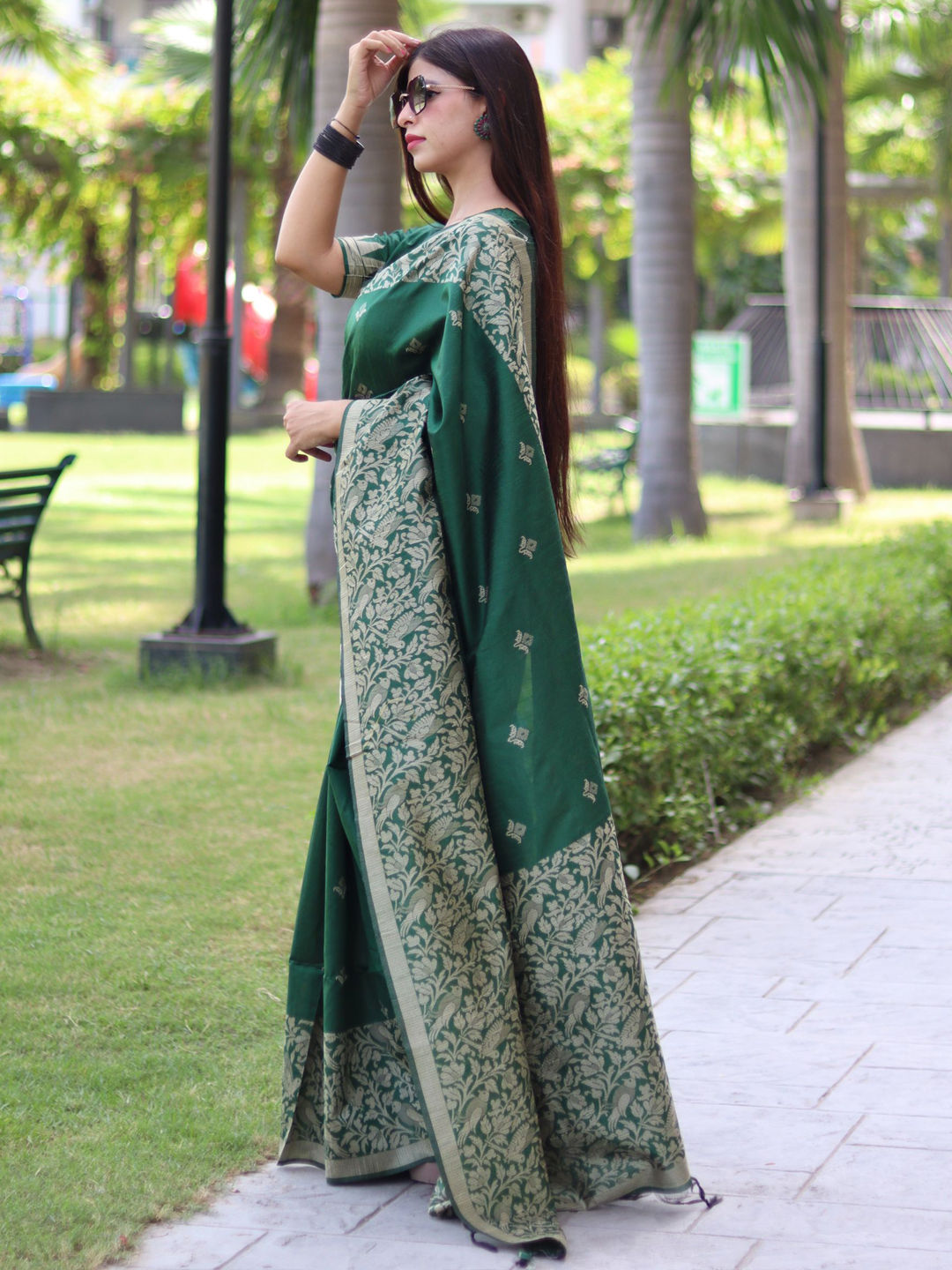 Raw Silk Party Wear Saree in Blue with Weaving work