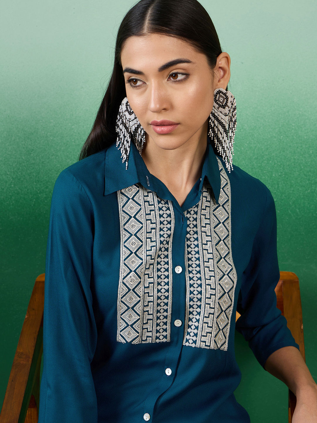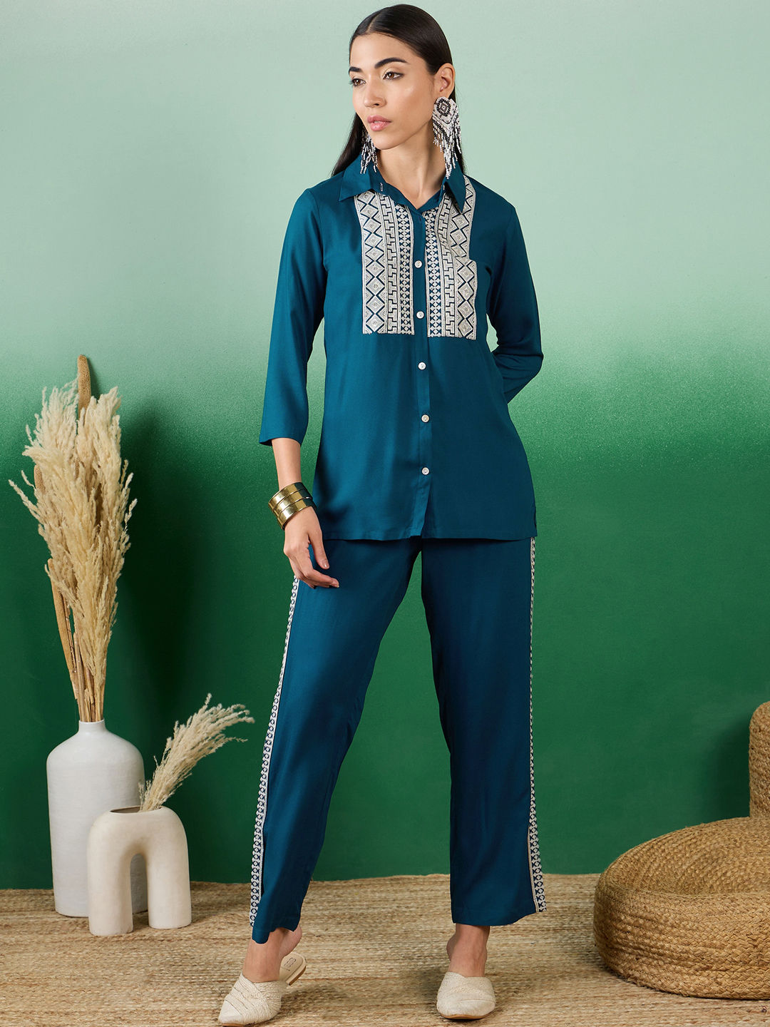 Blue color Co-ords Set in Rayon fabric with Sequence work