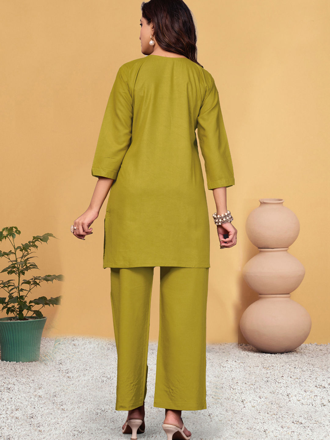 Rayon Casual Co-ords Set in Green with Embroidered work