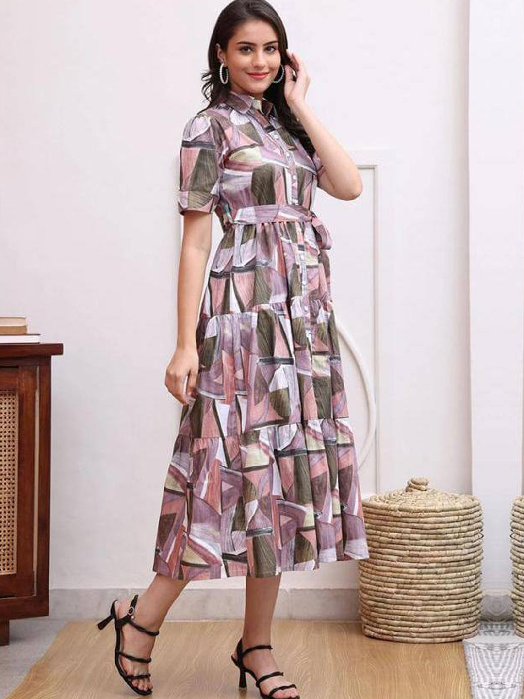 Rayon Casual Dress in Multicolor with Digital Print work