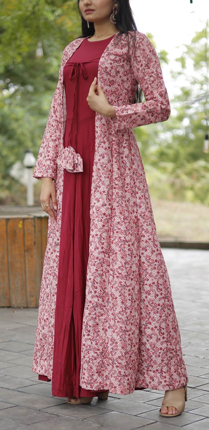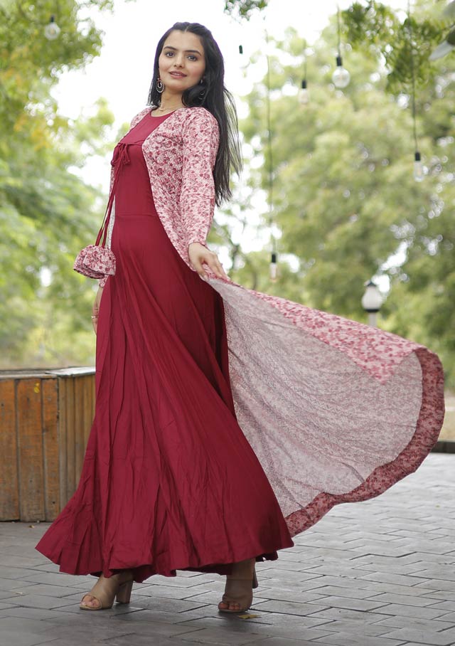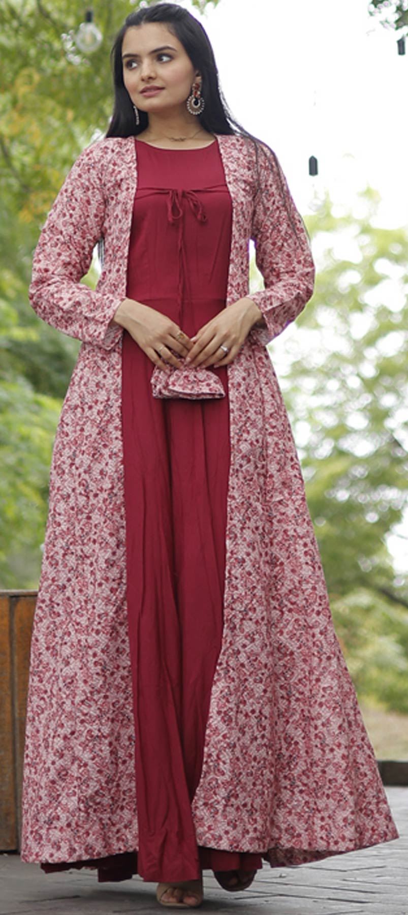 Pink and Majenta color Gown in Rayon fabric with Sequence work