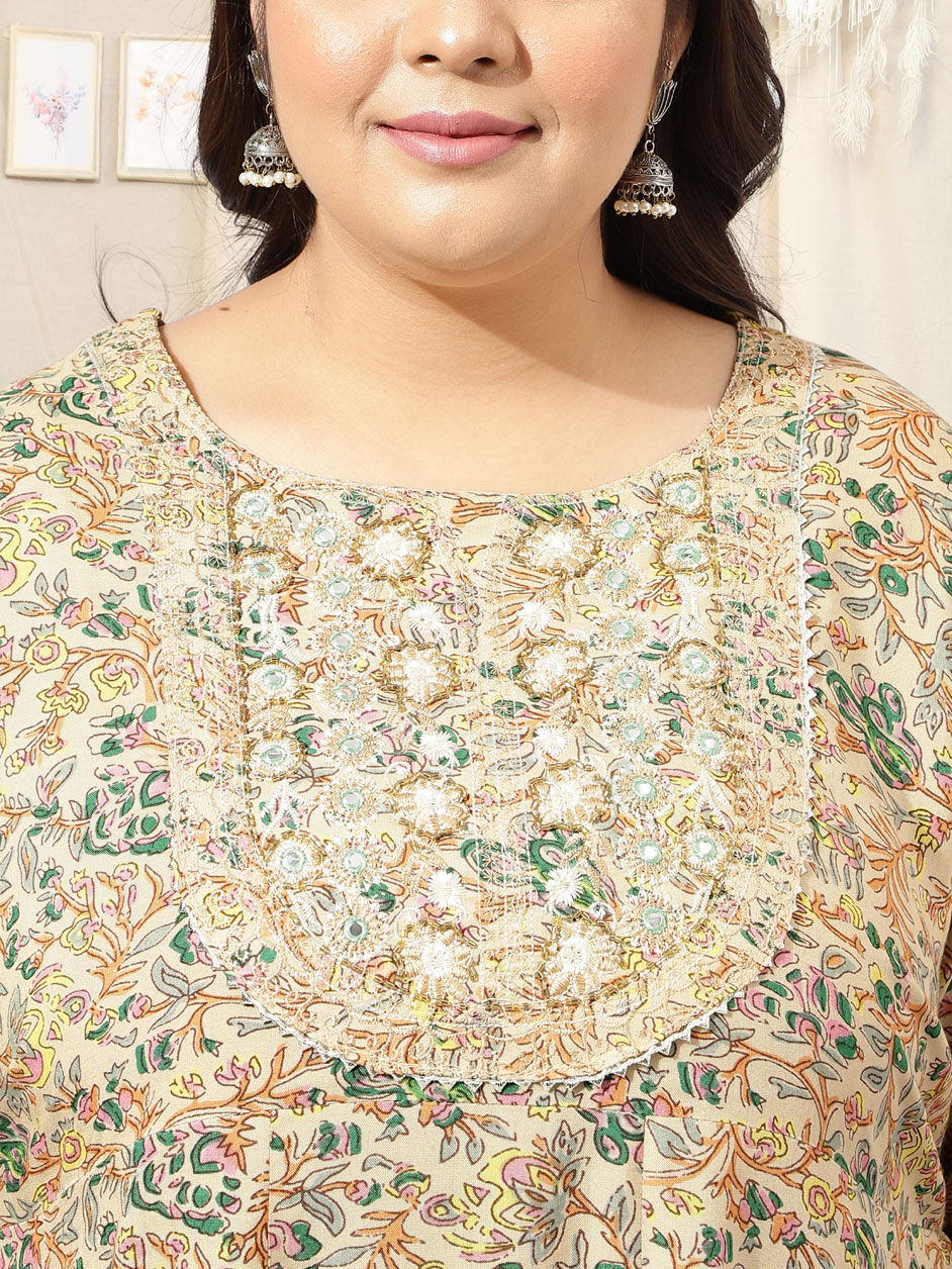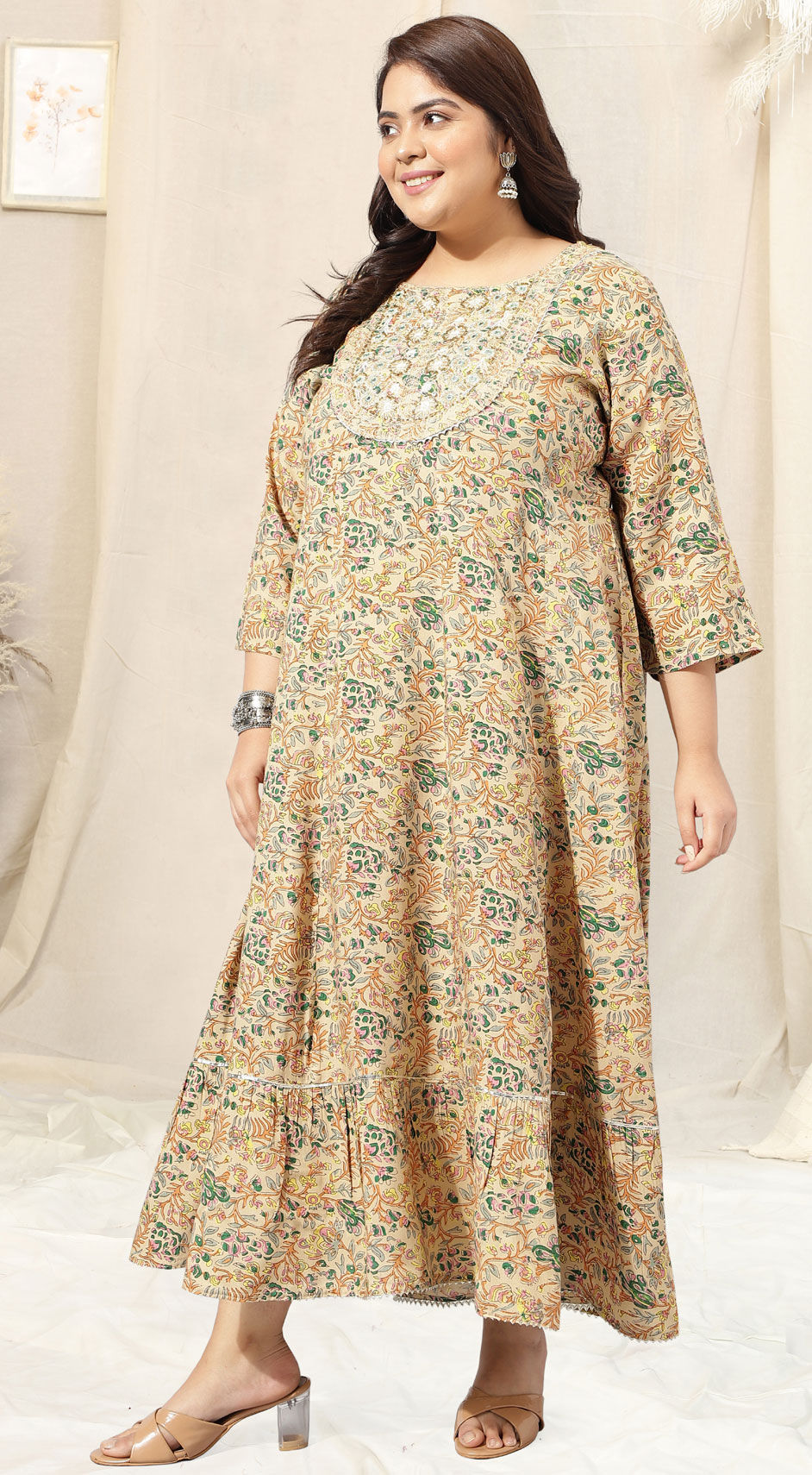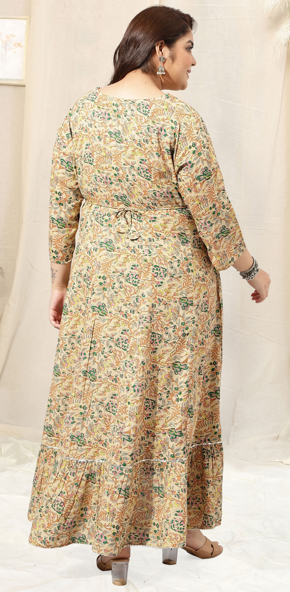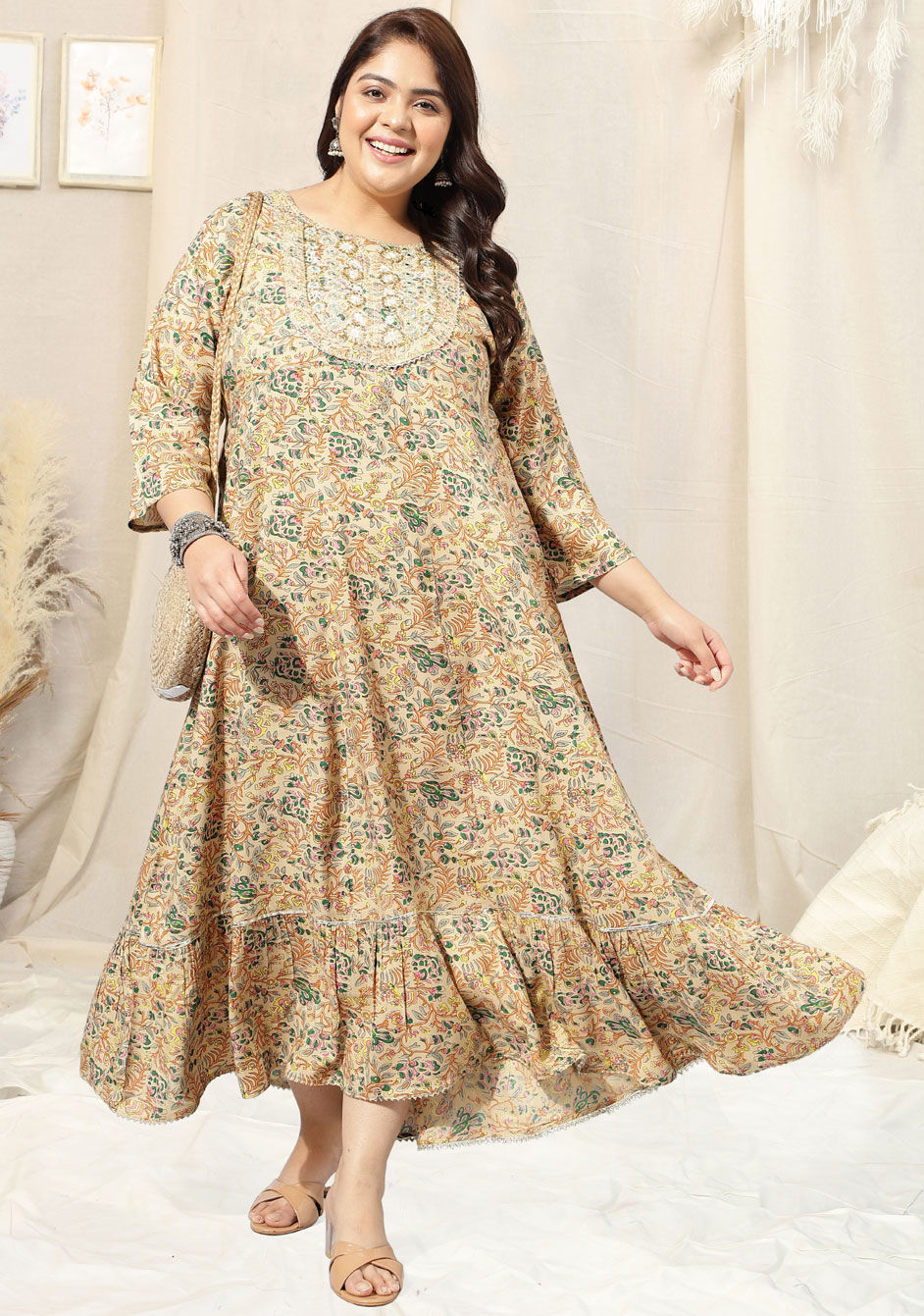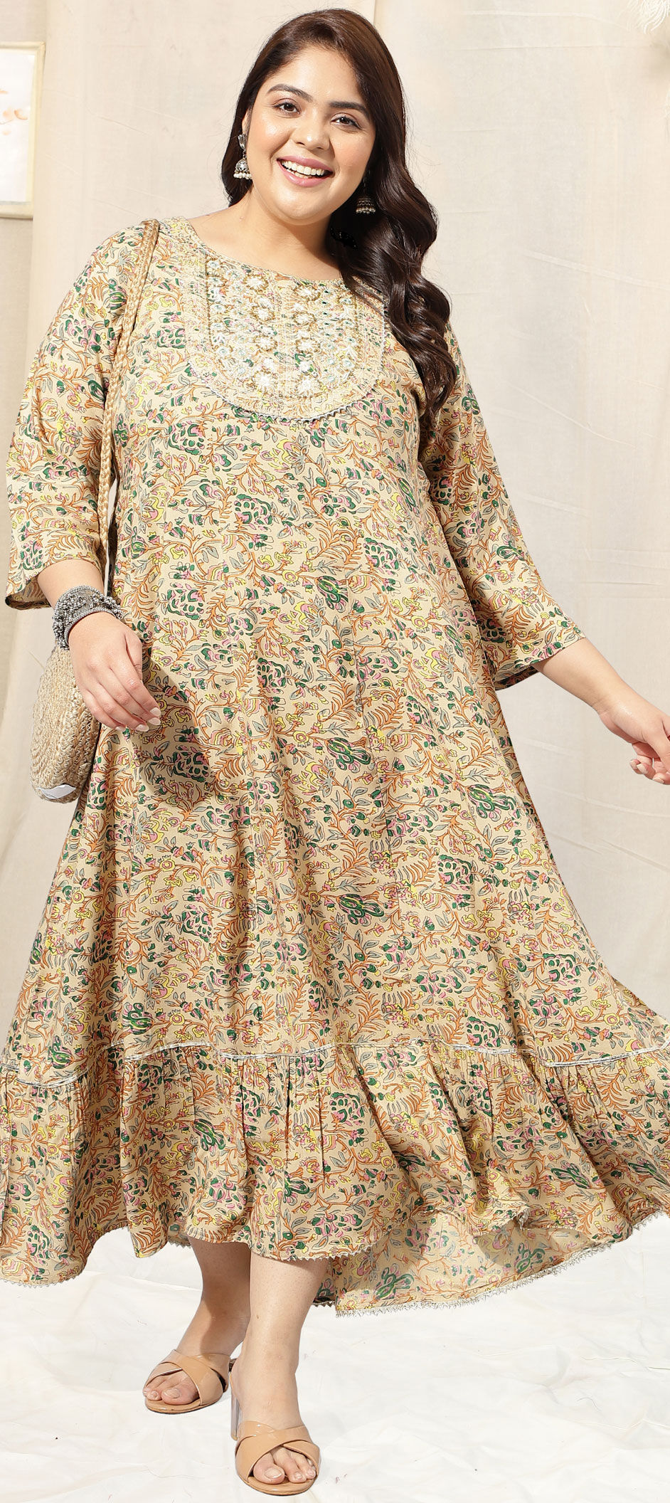 Beige and Brown, Green color Kurti in Rayon fabric with Floral, Gota Patti, Mirror, Sequence work