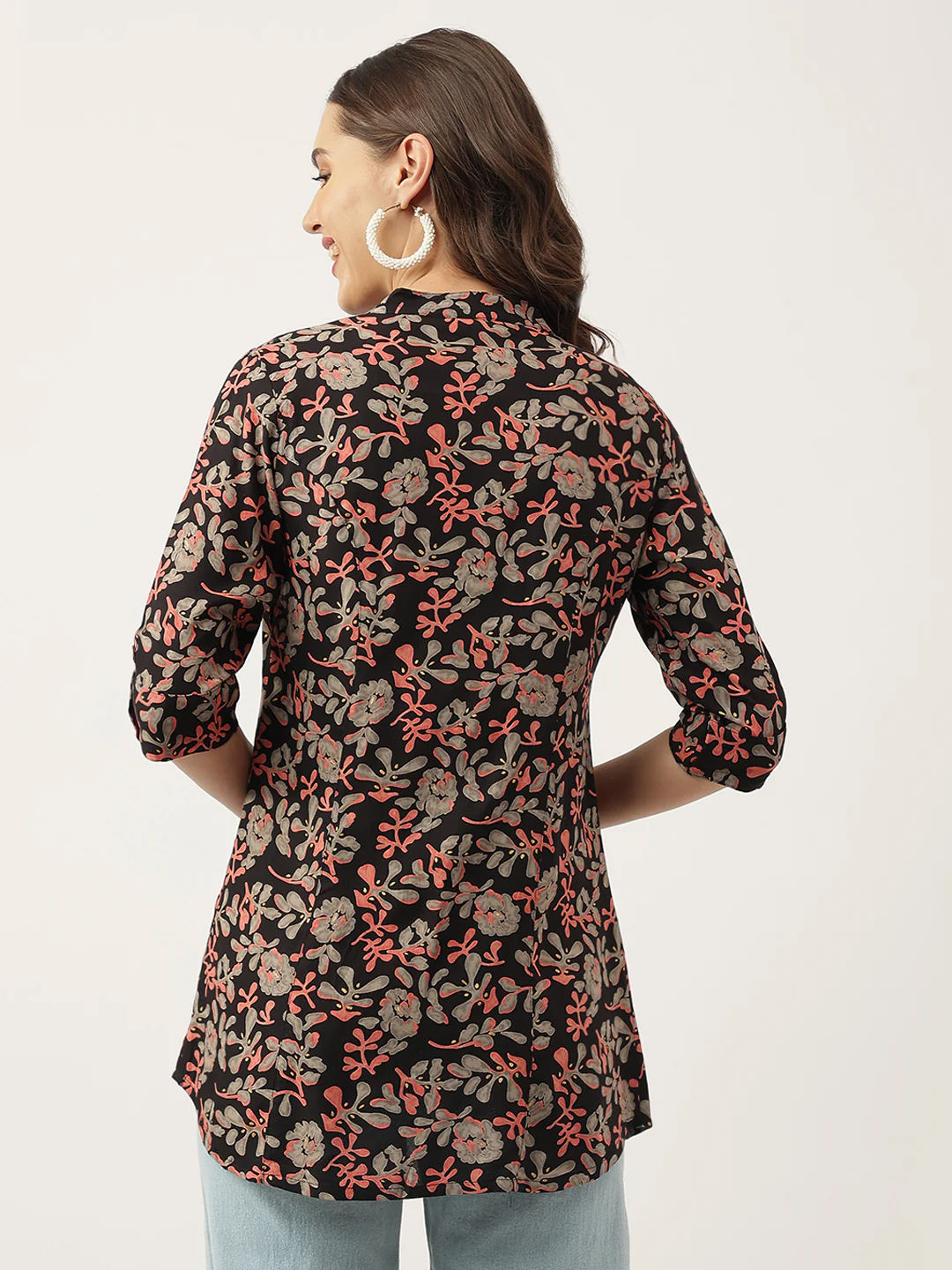 Black and Grey color Kurti in Rayon fabric with Printed work
