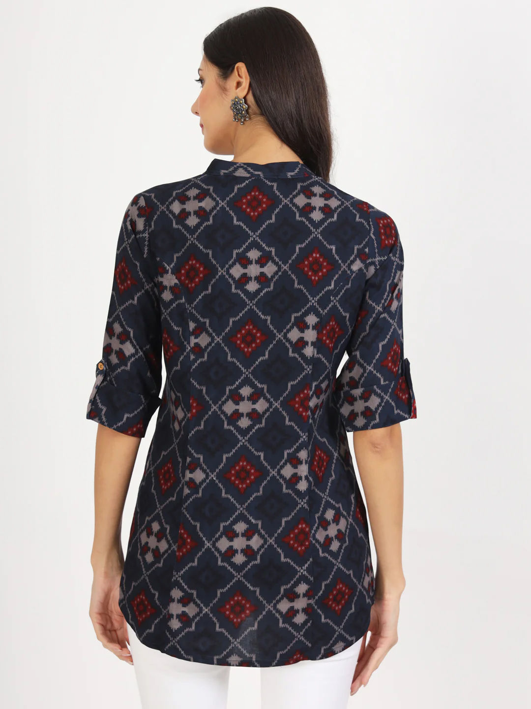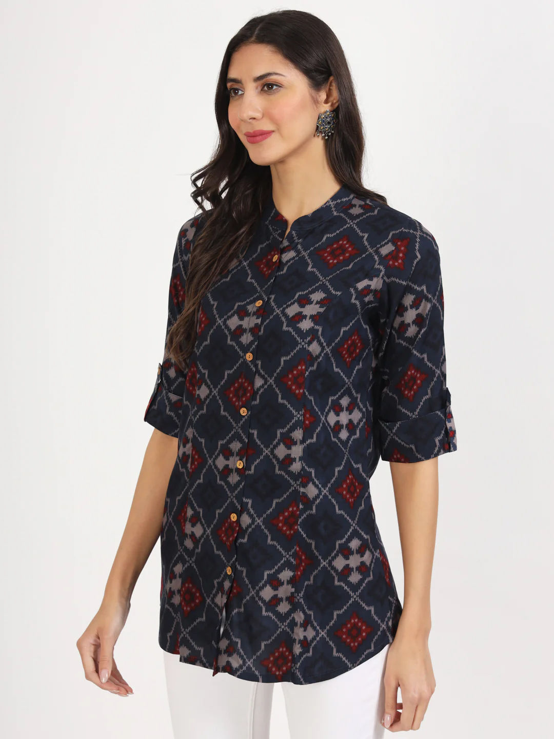 Blue color Kurti in Rayon, Viscose fabric with Printed work