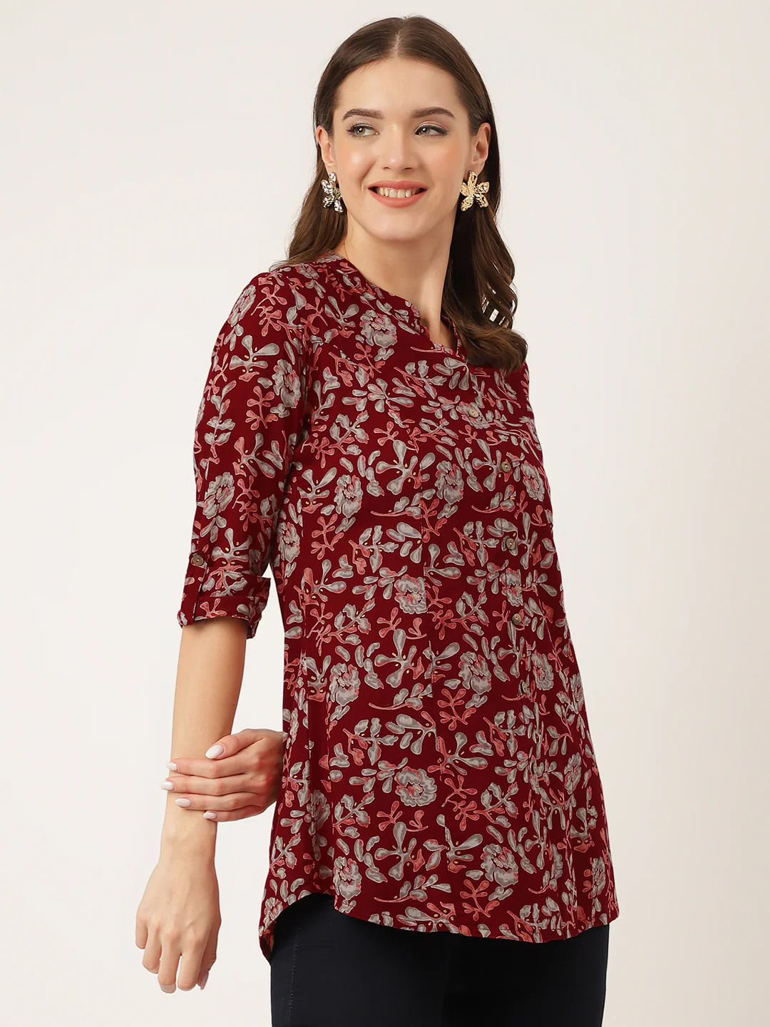 Cotton Summer Kurti in Red and Maroon with Printed work