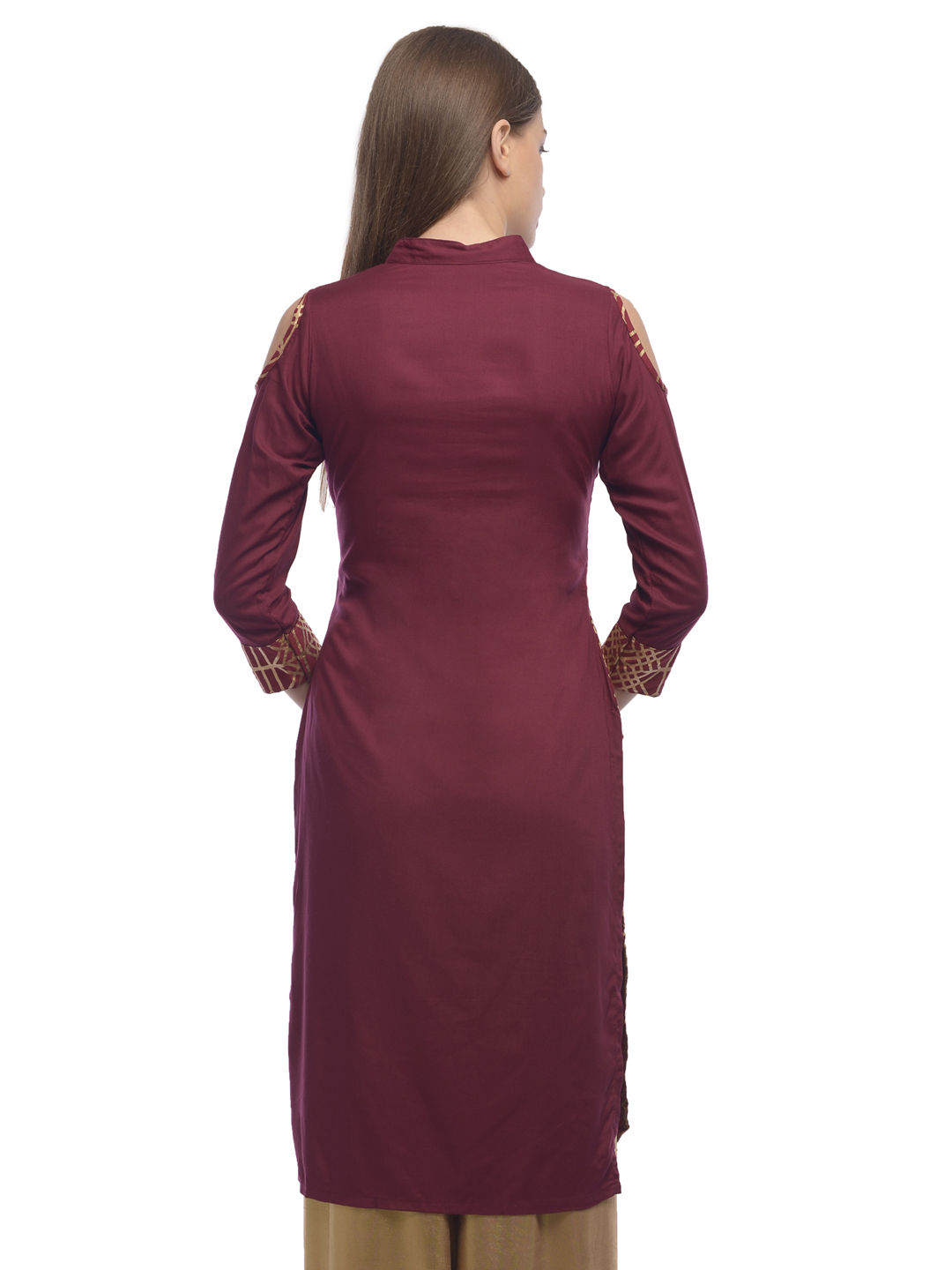 Red and Maroon color Kurti in Rayon fabric with Printed work