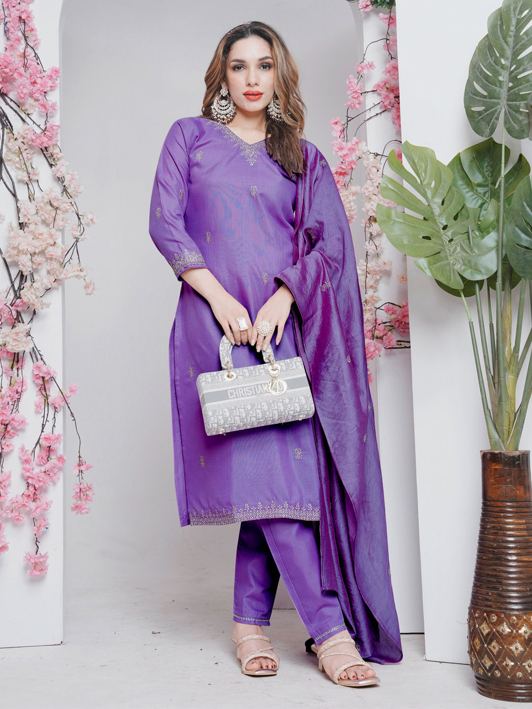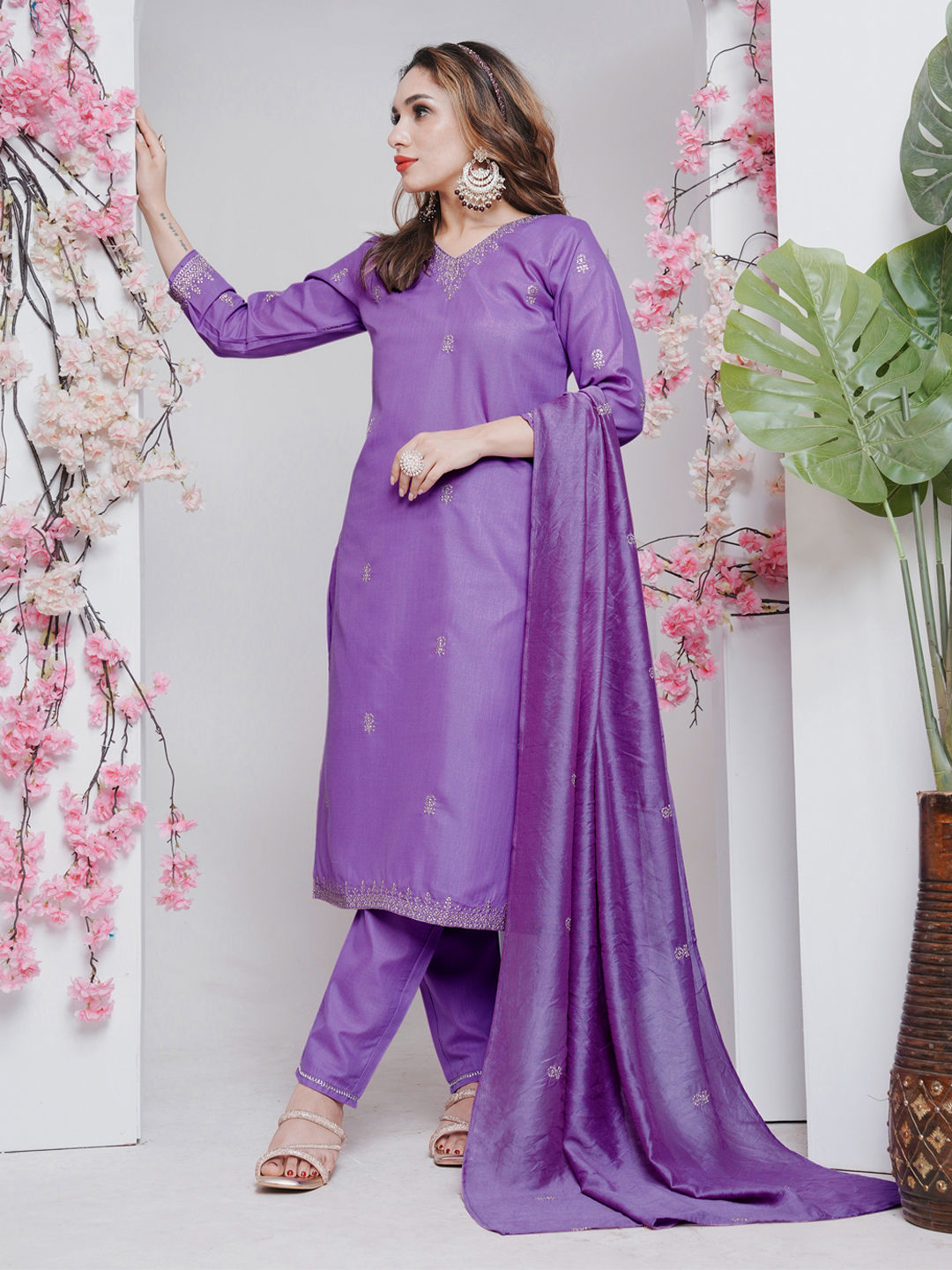 Purple and Violet color Salwar Kameez in Rayon fabric with Embroidered, Thread work