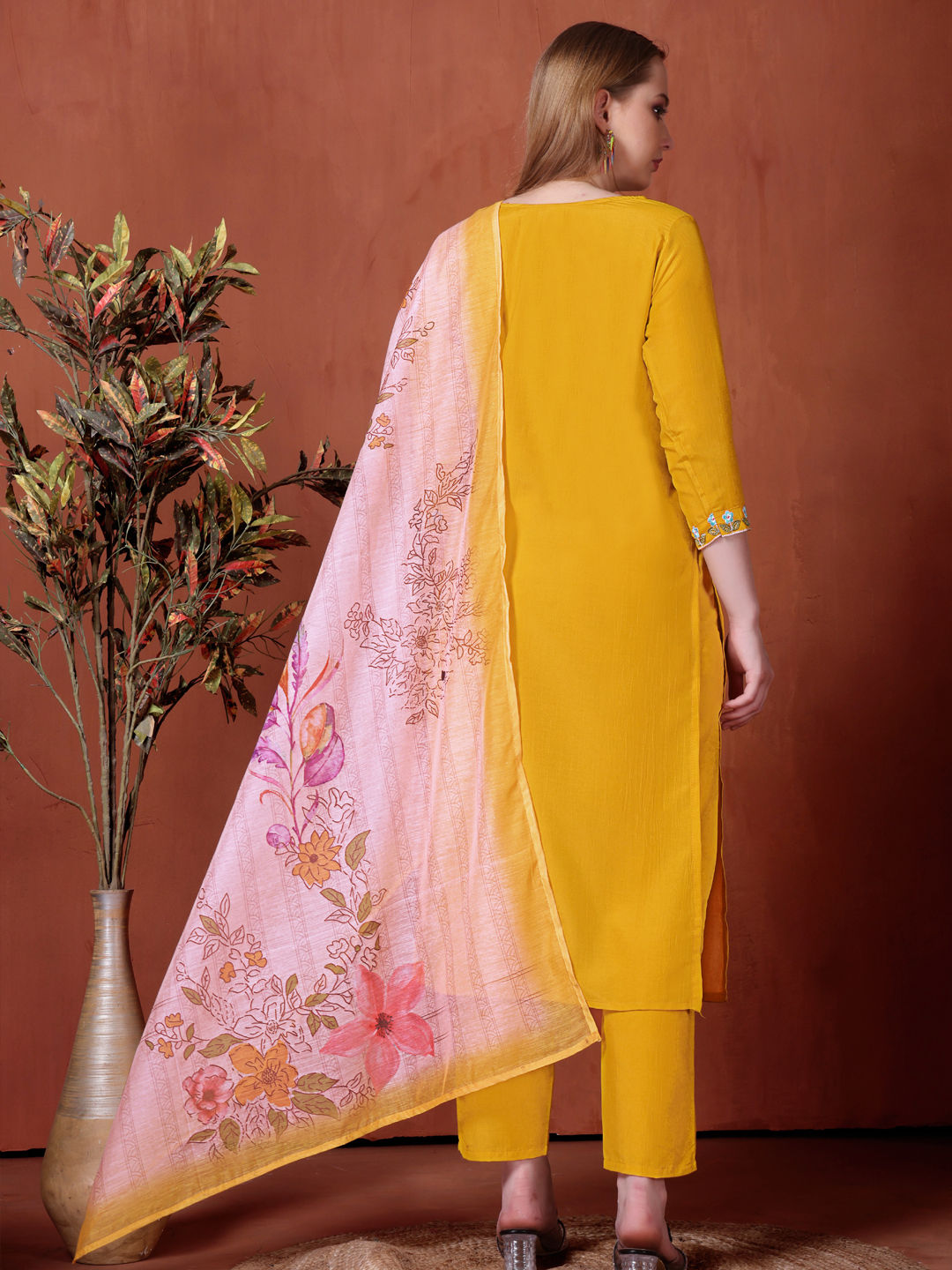in Yellow with Embroidered work