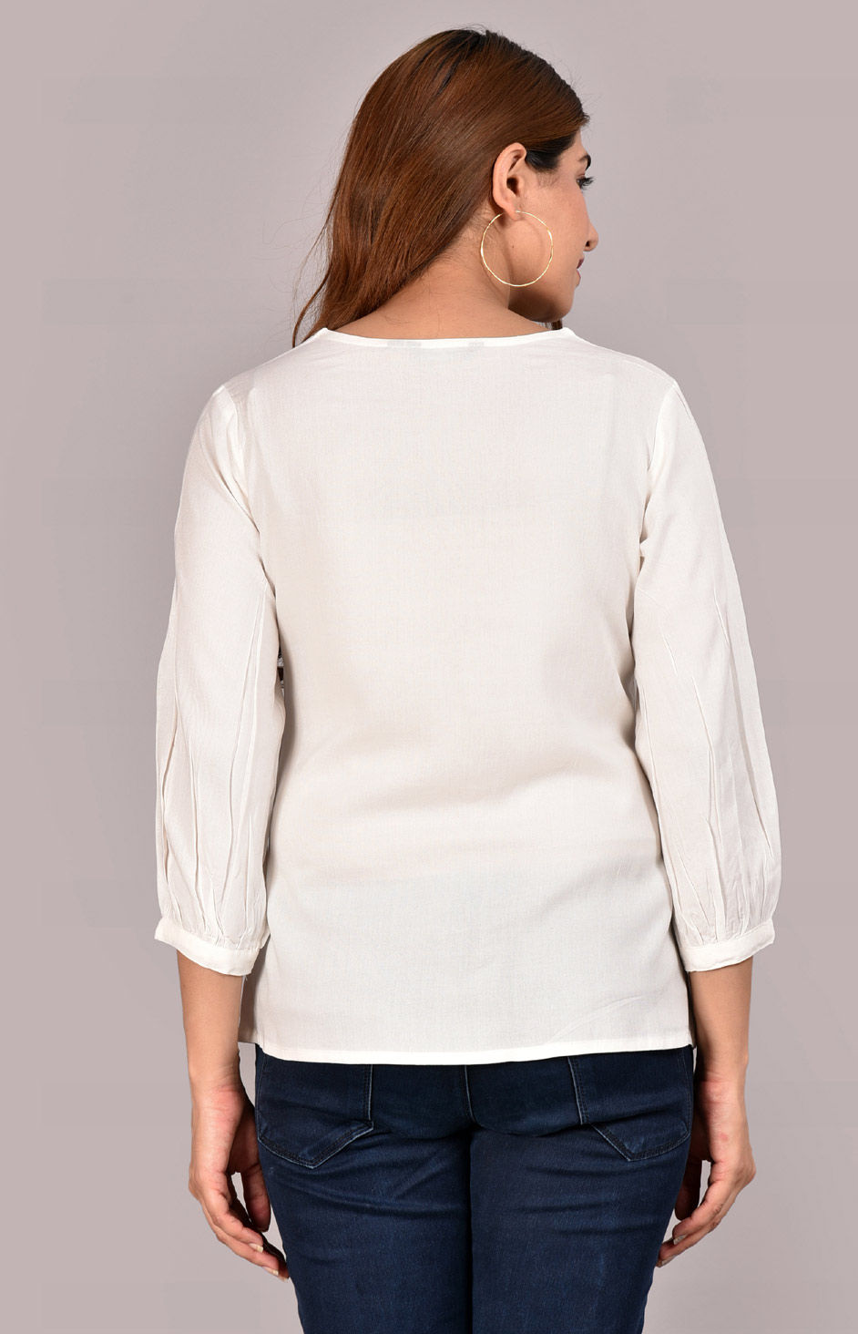 White and Off White color Tops and Shirts in Rayon fabric with Thread work