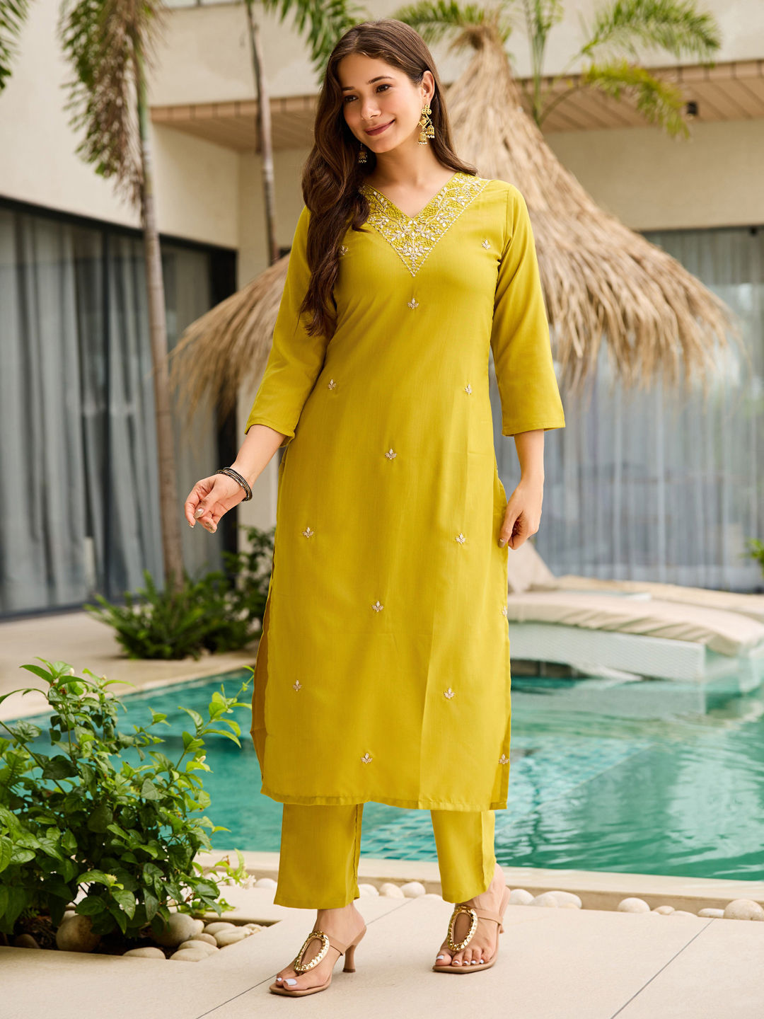 in Green with Embroidered work