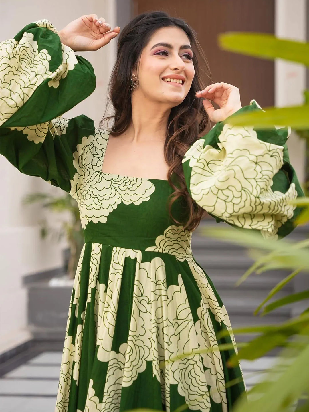 in Green with Digital Print work