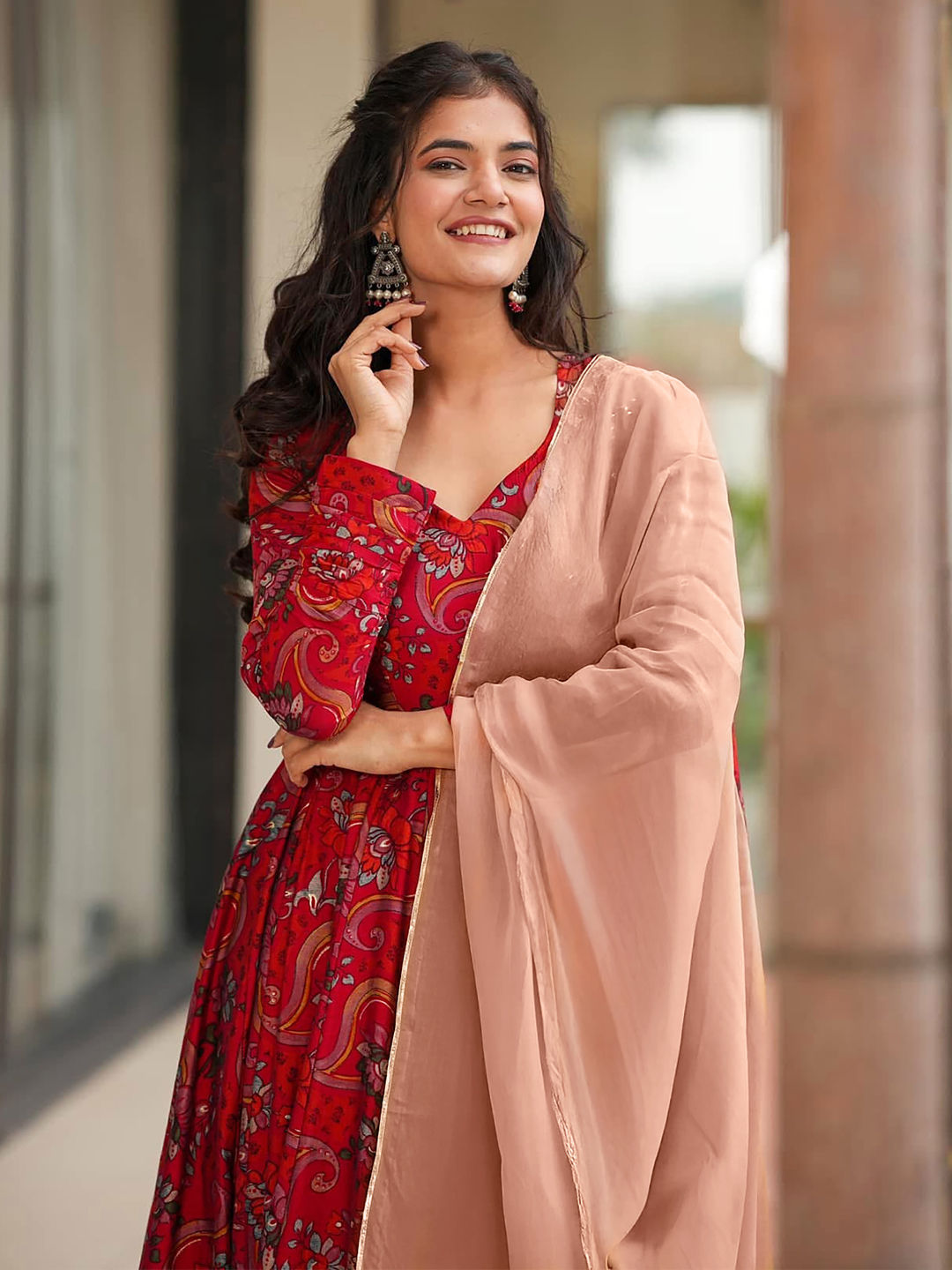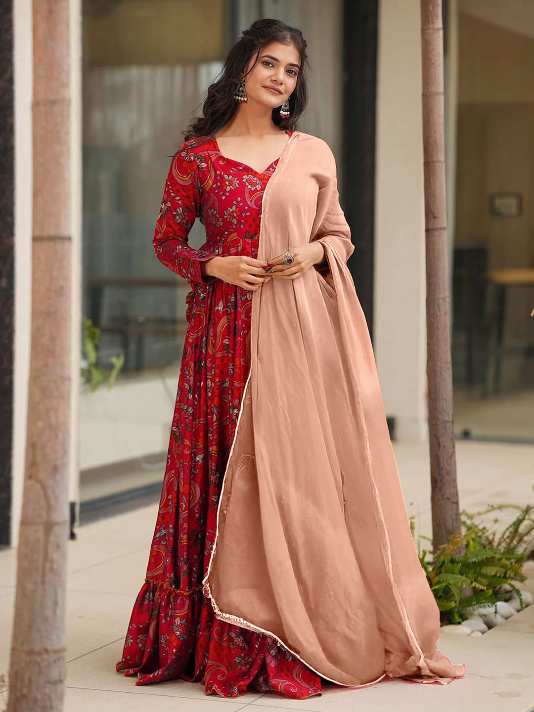 Pink and Majenta color Gown in Rayon fabric with Digital Print work