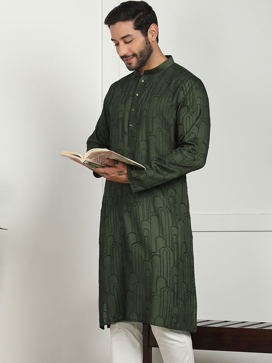Green color Kurta in Rayon, Viscose fabric with Embroidered, Resham, Thread work