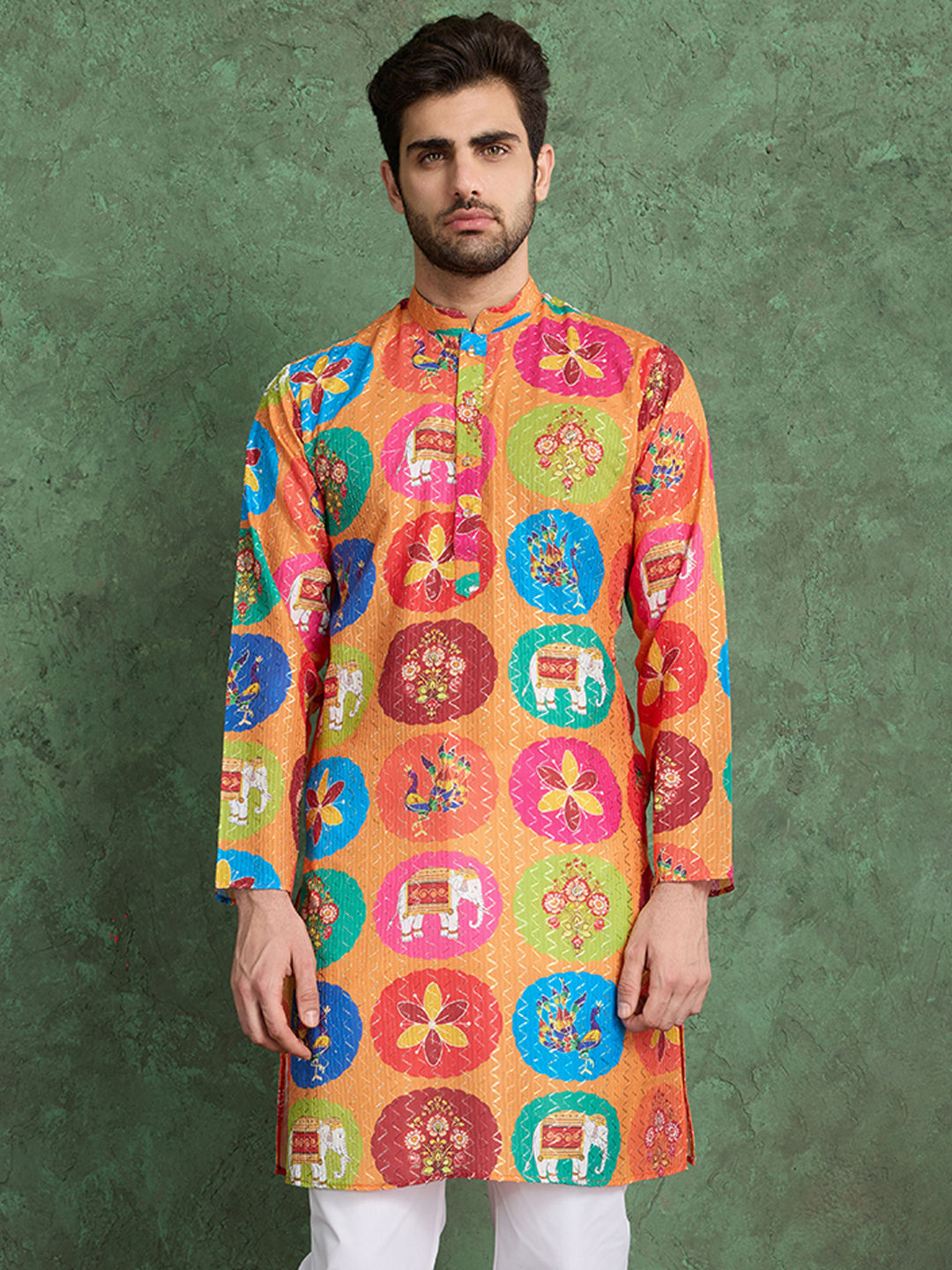 Orange color Kurta in Rayon fabric with Embroidered, Printed work
