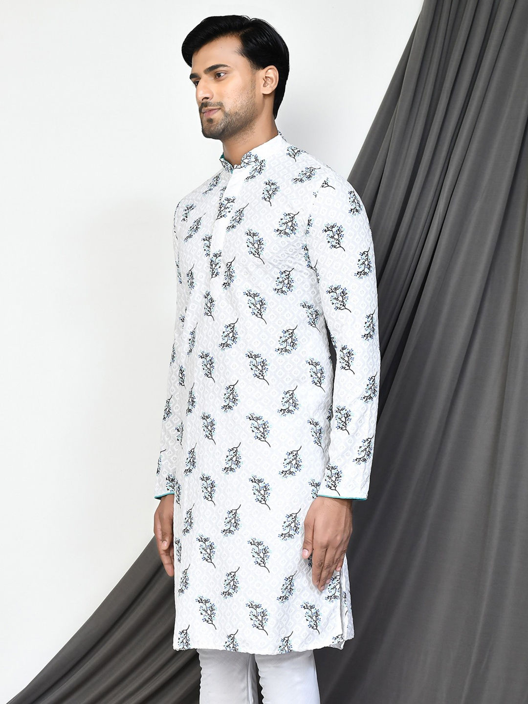 in White and Off White with Printed work