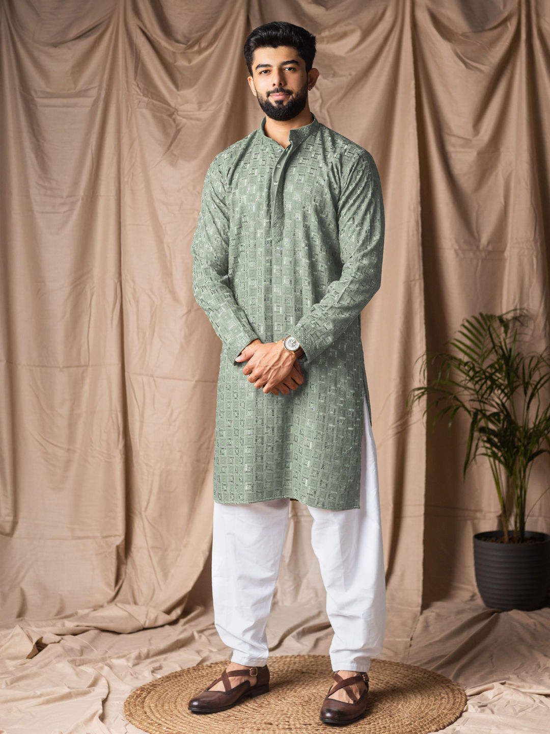 in Green with Embroidered work
