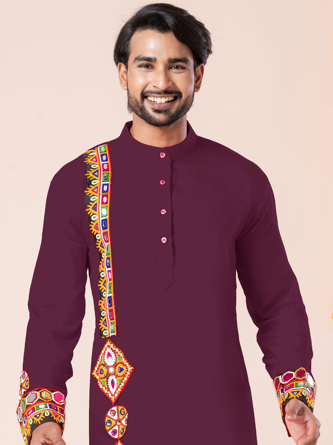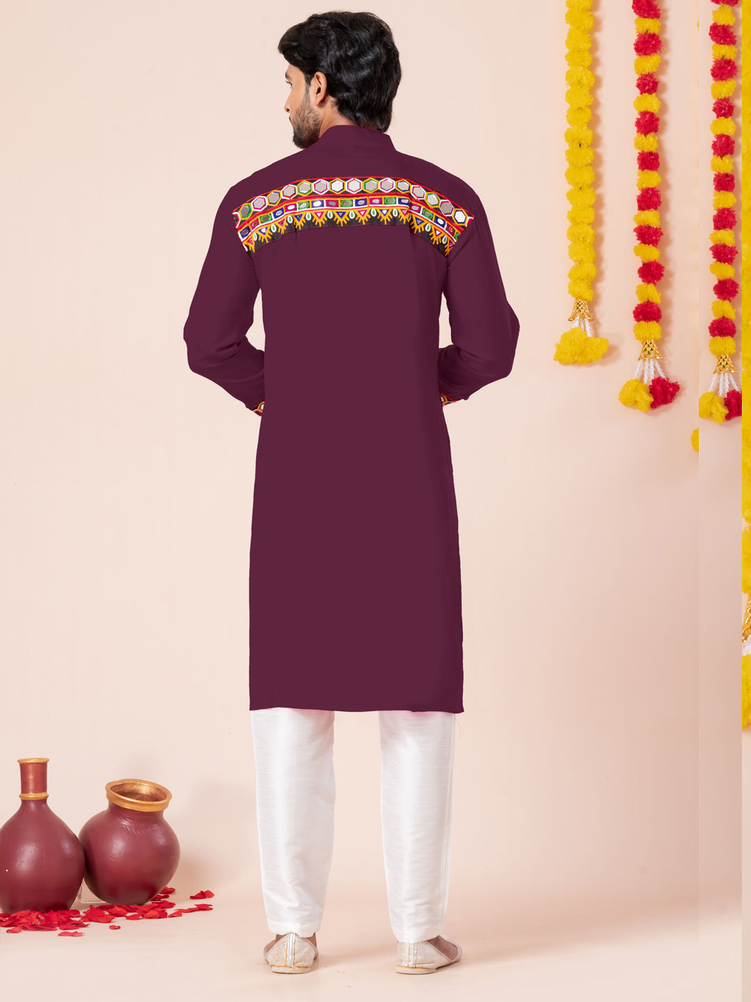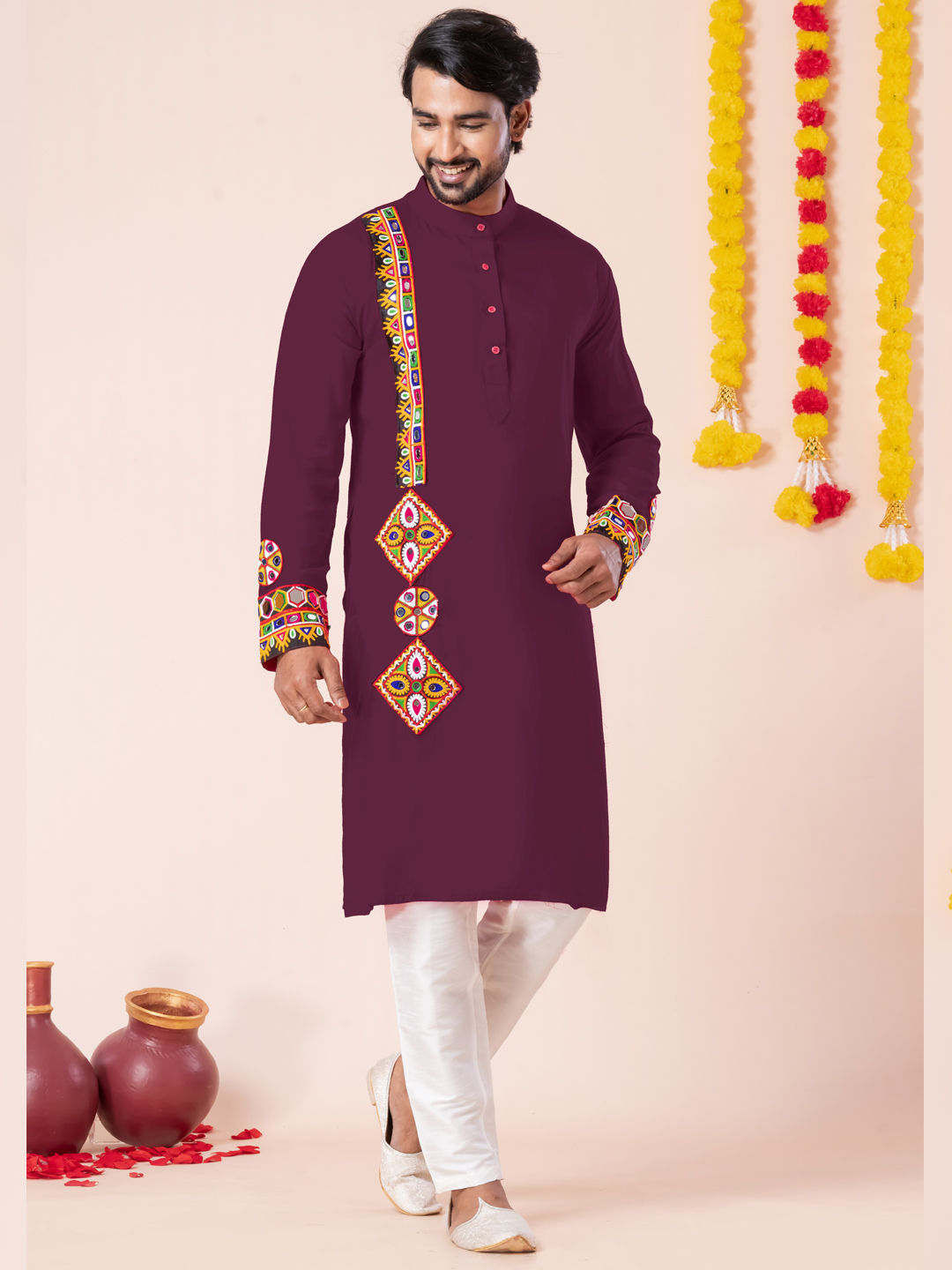 Purple and Violet color Kurta Pyjamas in Rayon fabric with Embroidered, Patch work