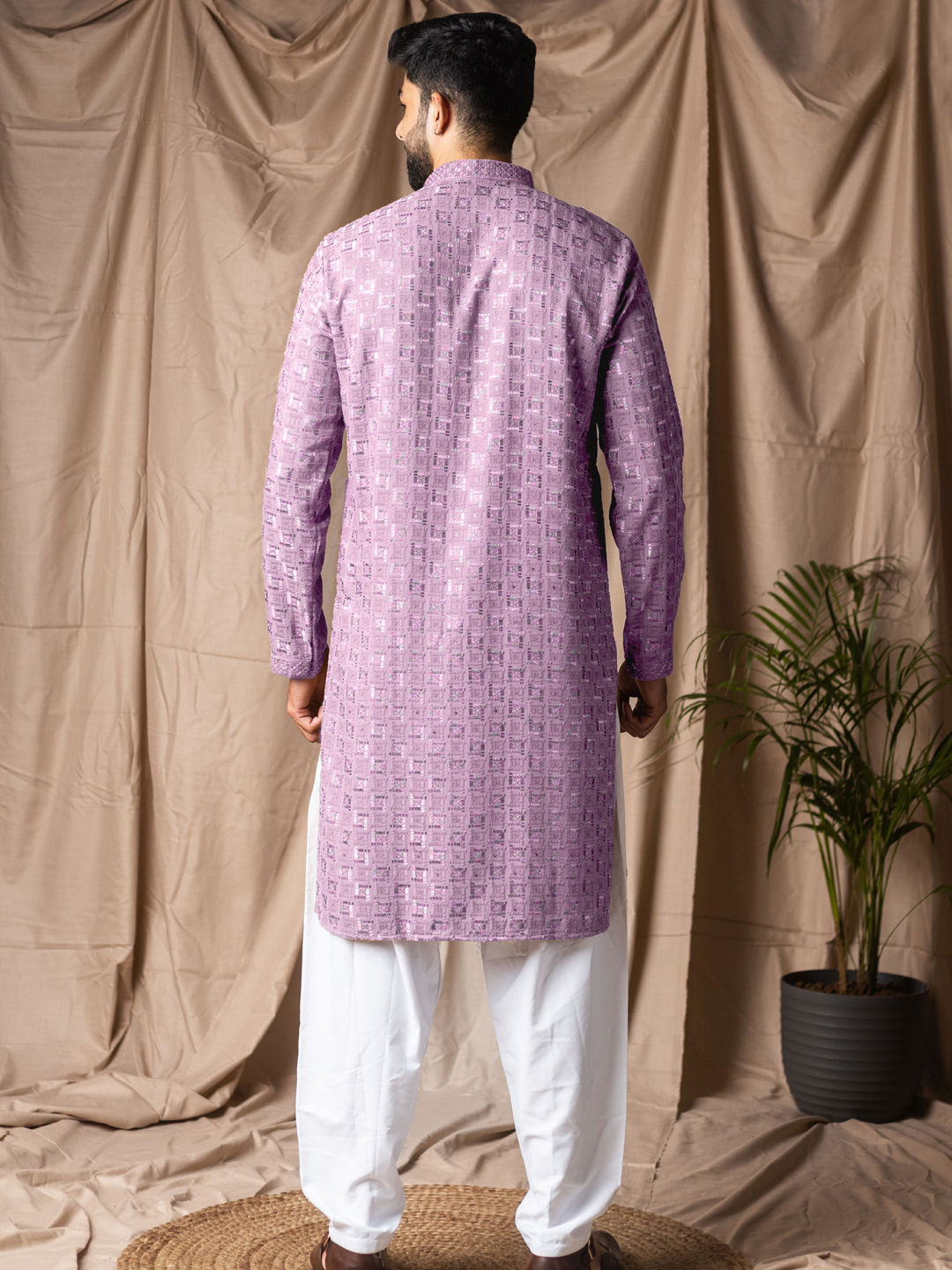Viscose Traditional Kurta Pyjamas in Purple and Violet with Thread work