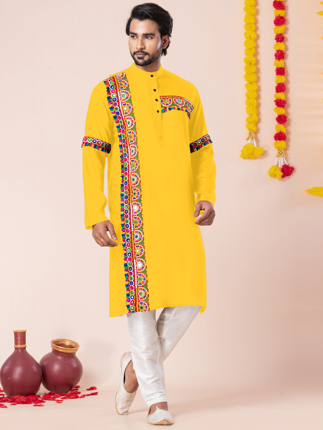 in Yellow with Embroidered work