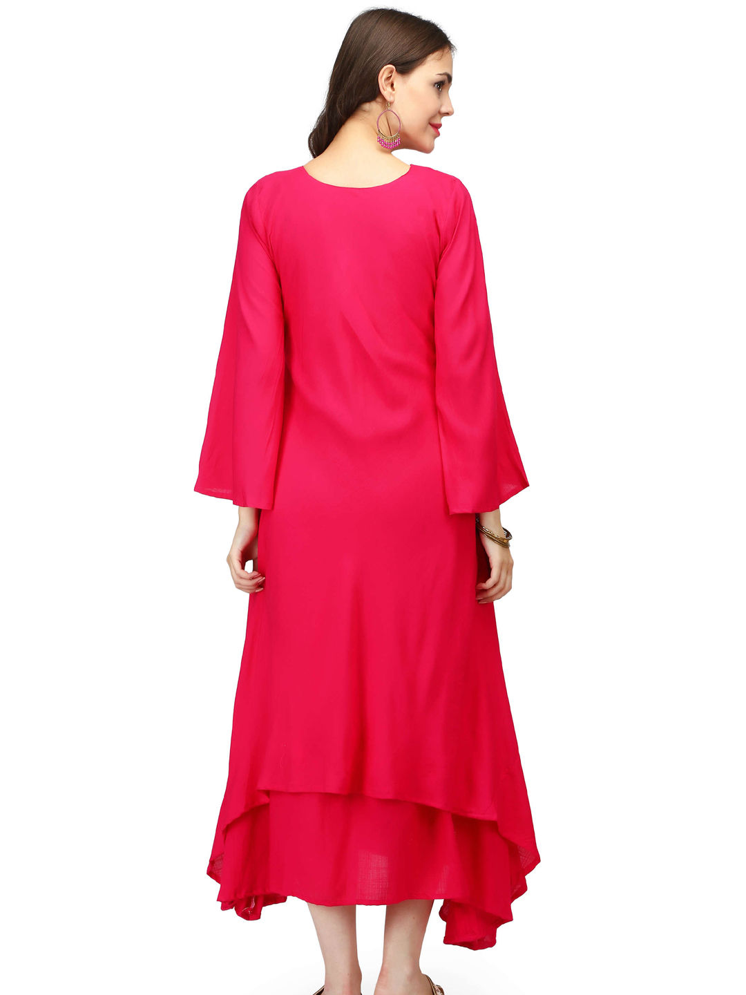 Pink and Majenta color Kurti in Rayon fabric with Thread work