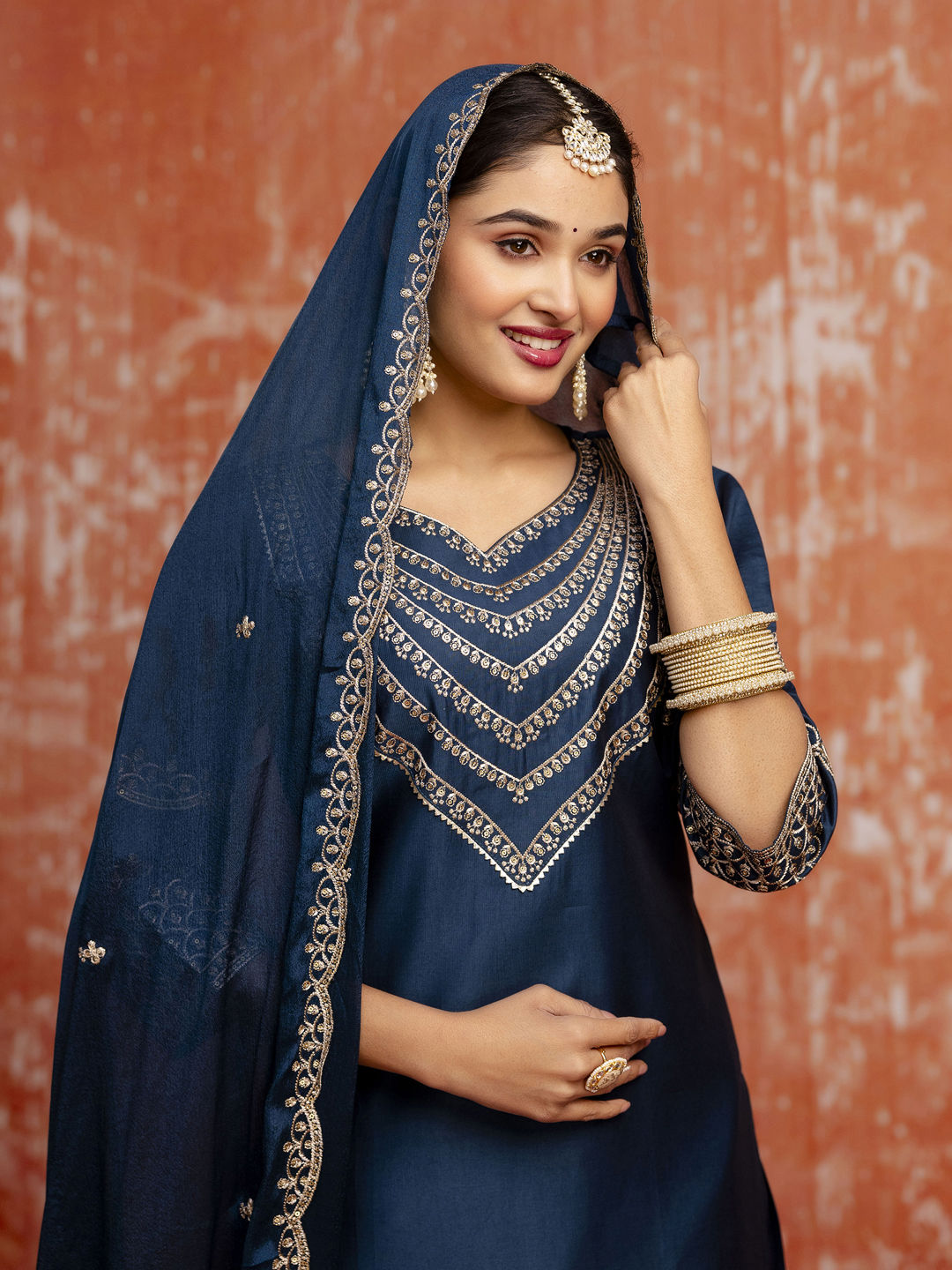 in Blue with Embroidered work