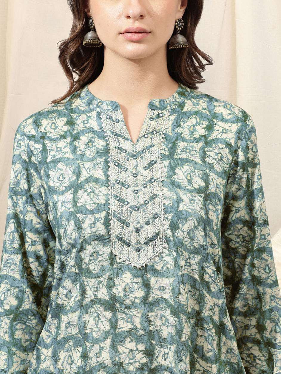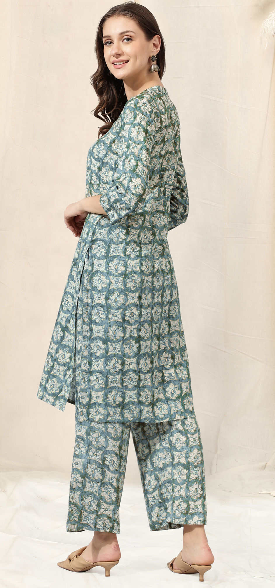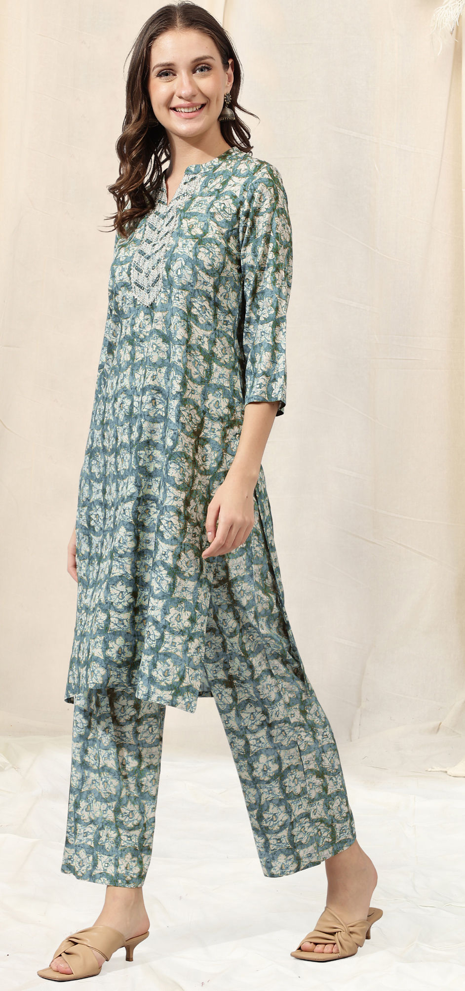 Blue, White and Off White color Salwar Kameez in Rayon fabric with Printed work