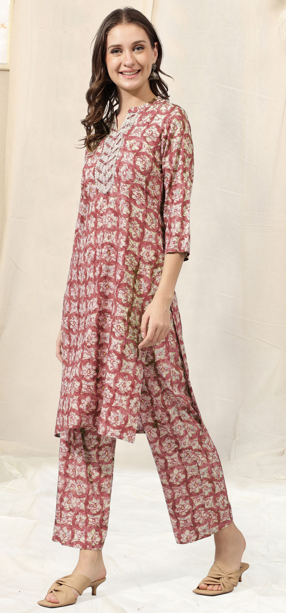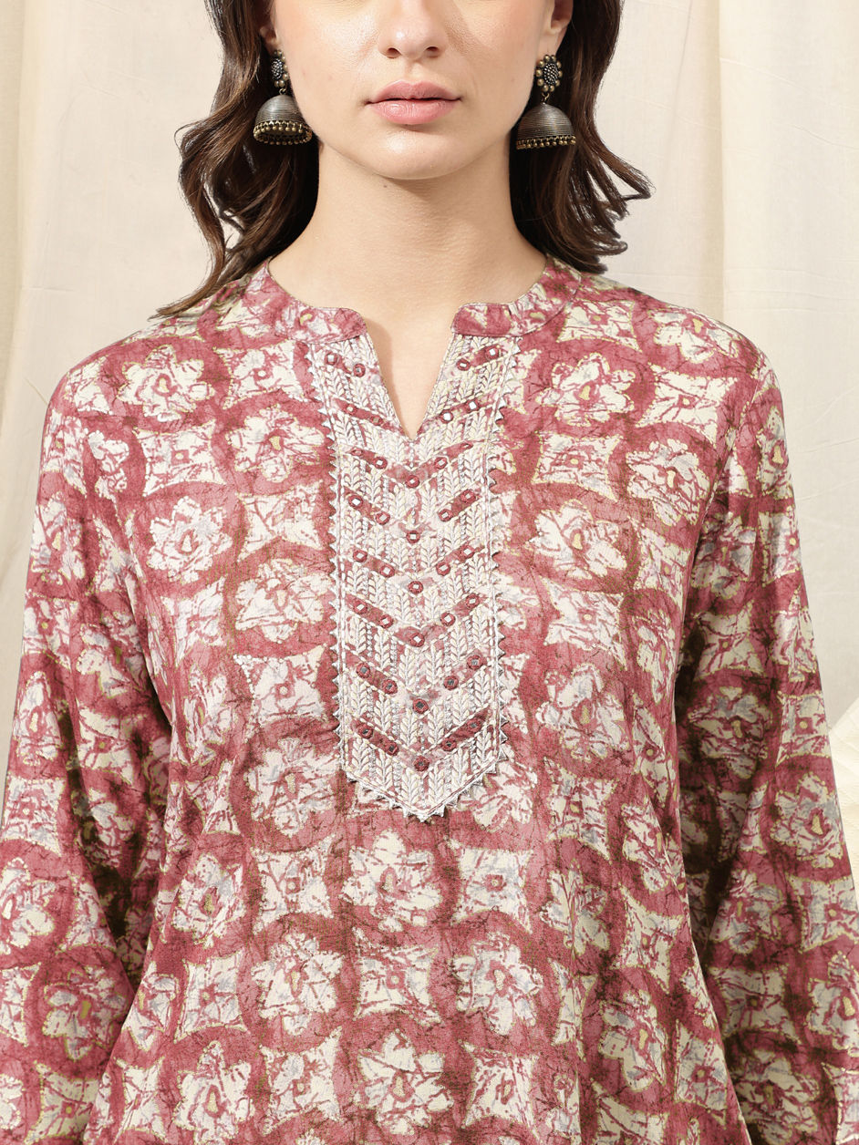 in Pink and Majenta with Printed work