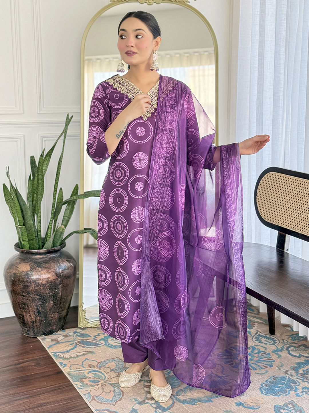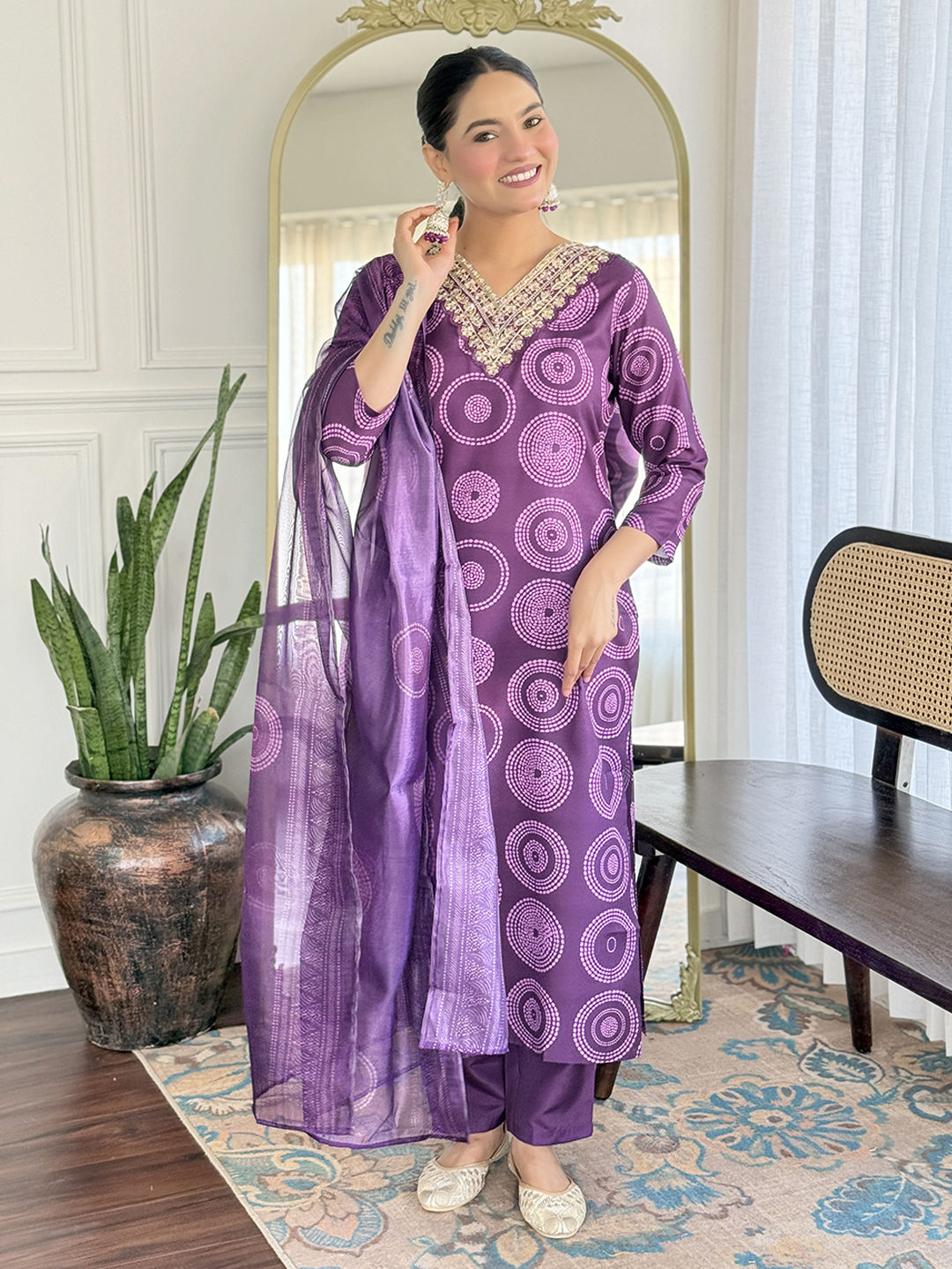 Rayon Reception Salwar Kameez in Purple and Violet with Embroidered work