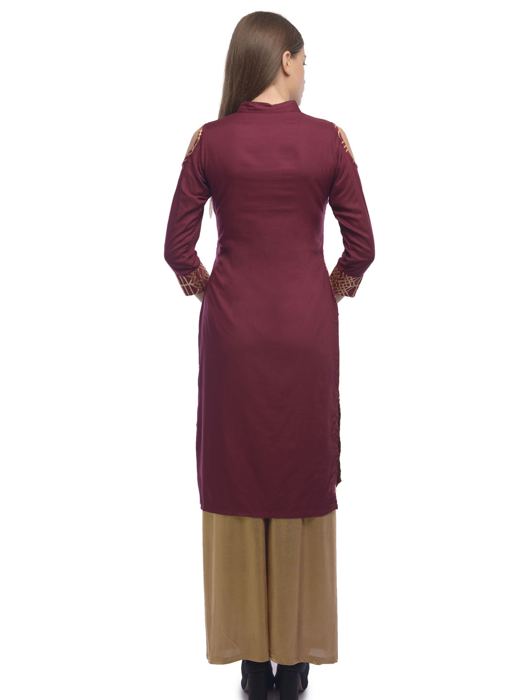 Red and Maroon color Salwar Kameez in Rayon fabric with Printed work