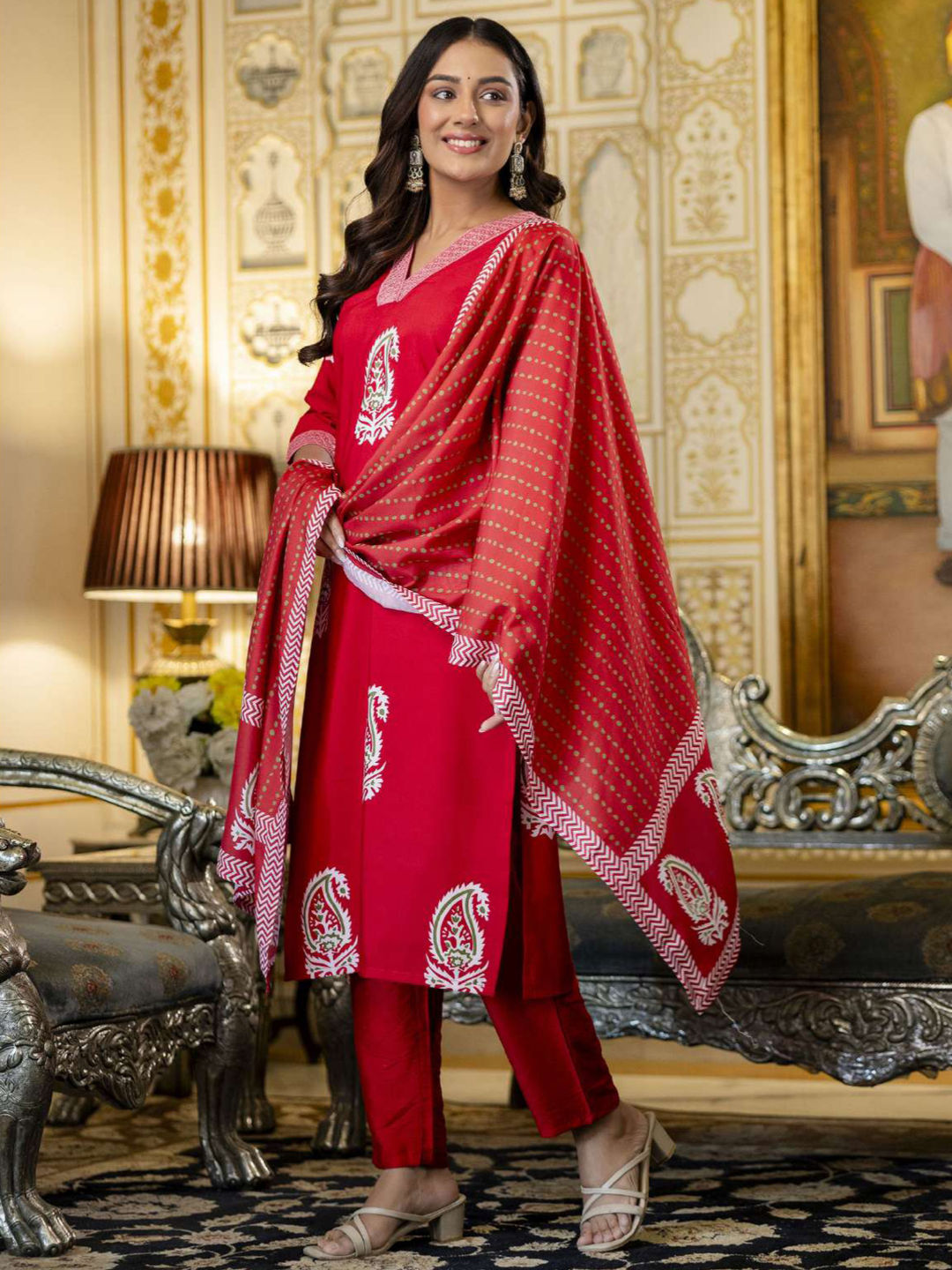Red and Maroon color Salwar Kameez in Rayon fabric with Printed work