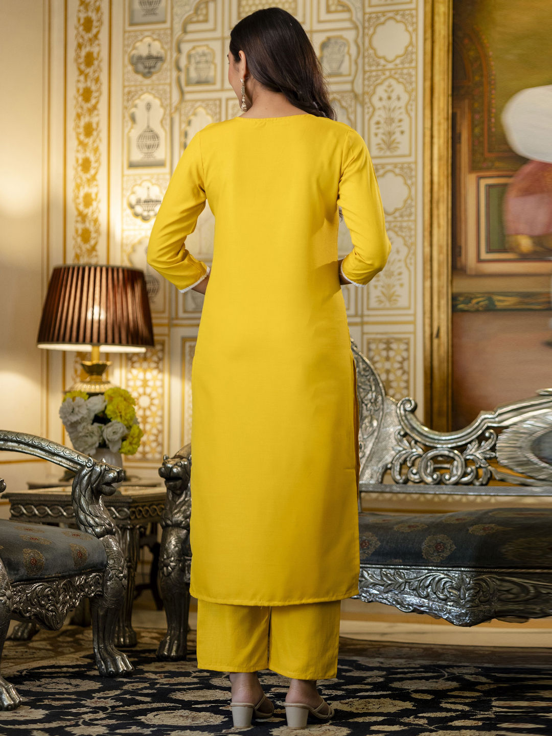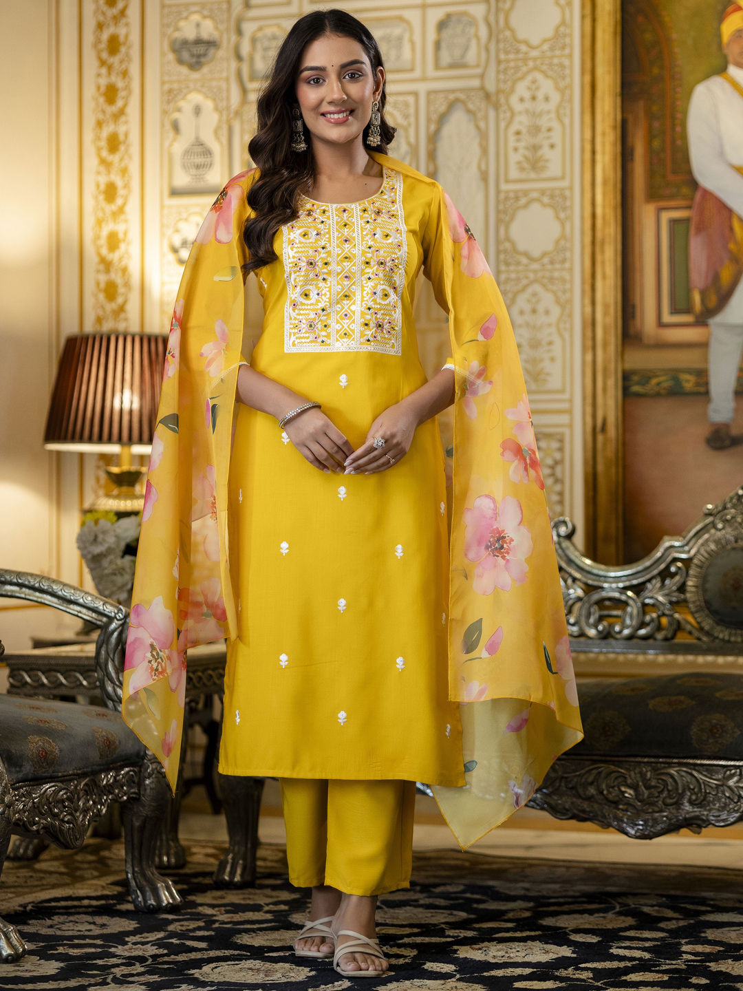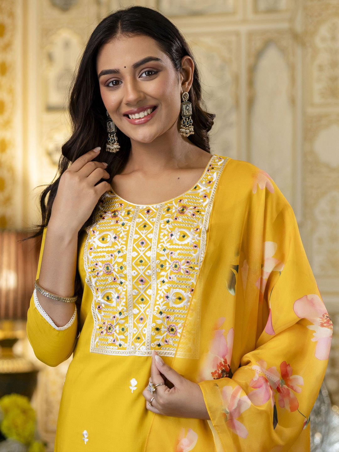 in Yellow with Embroidered work
