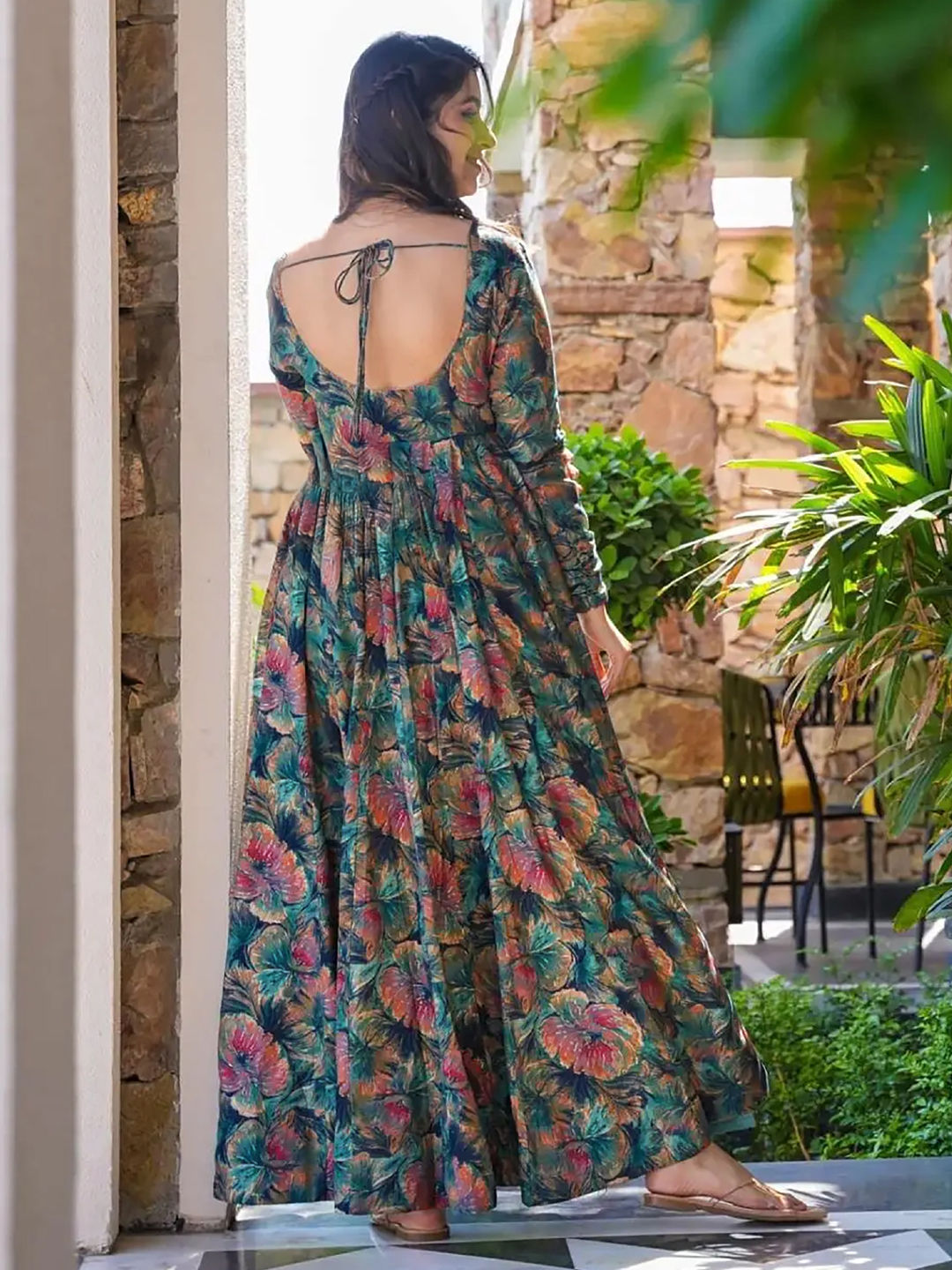 Rayon Festive Gown in Pink and Majenta with Digital Print work
