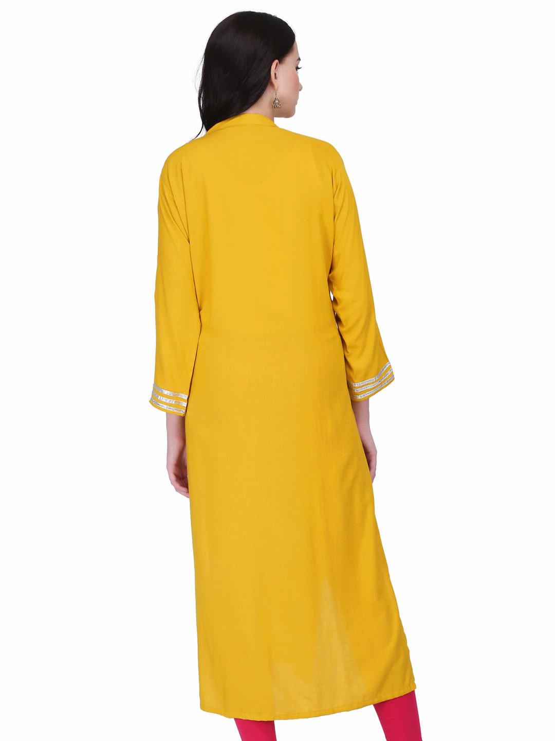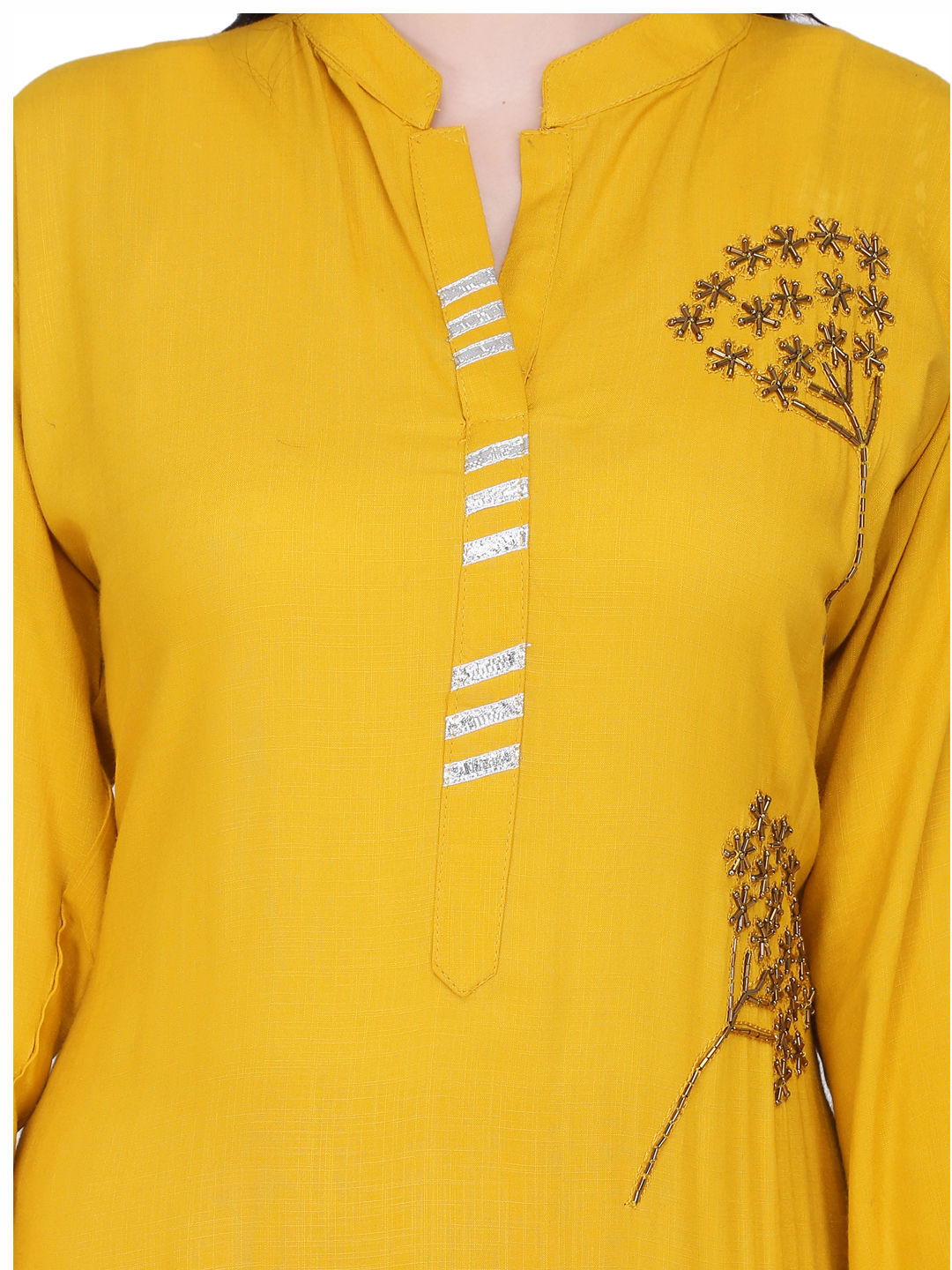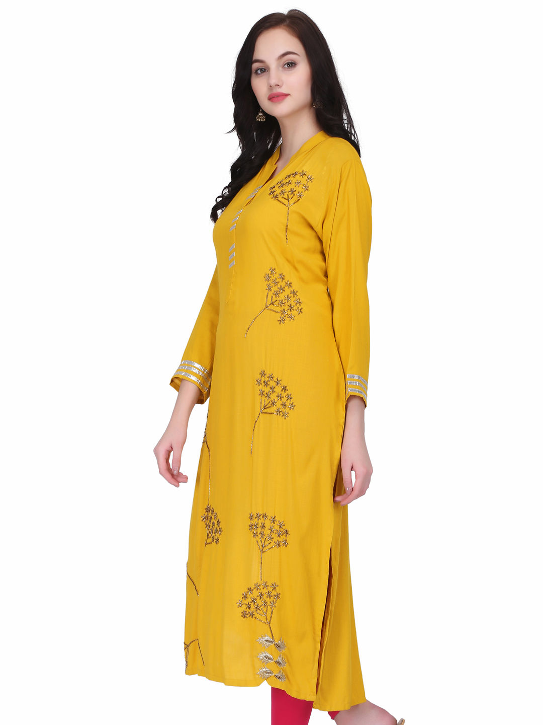 Yellow color Kurti in Rayon fabric with Embroidered work