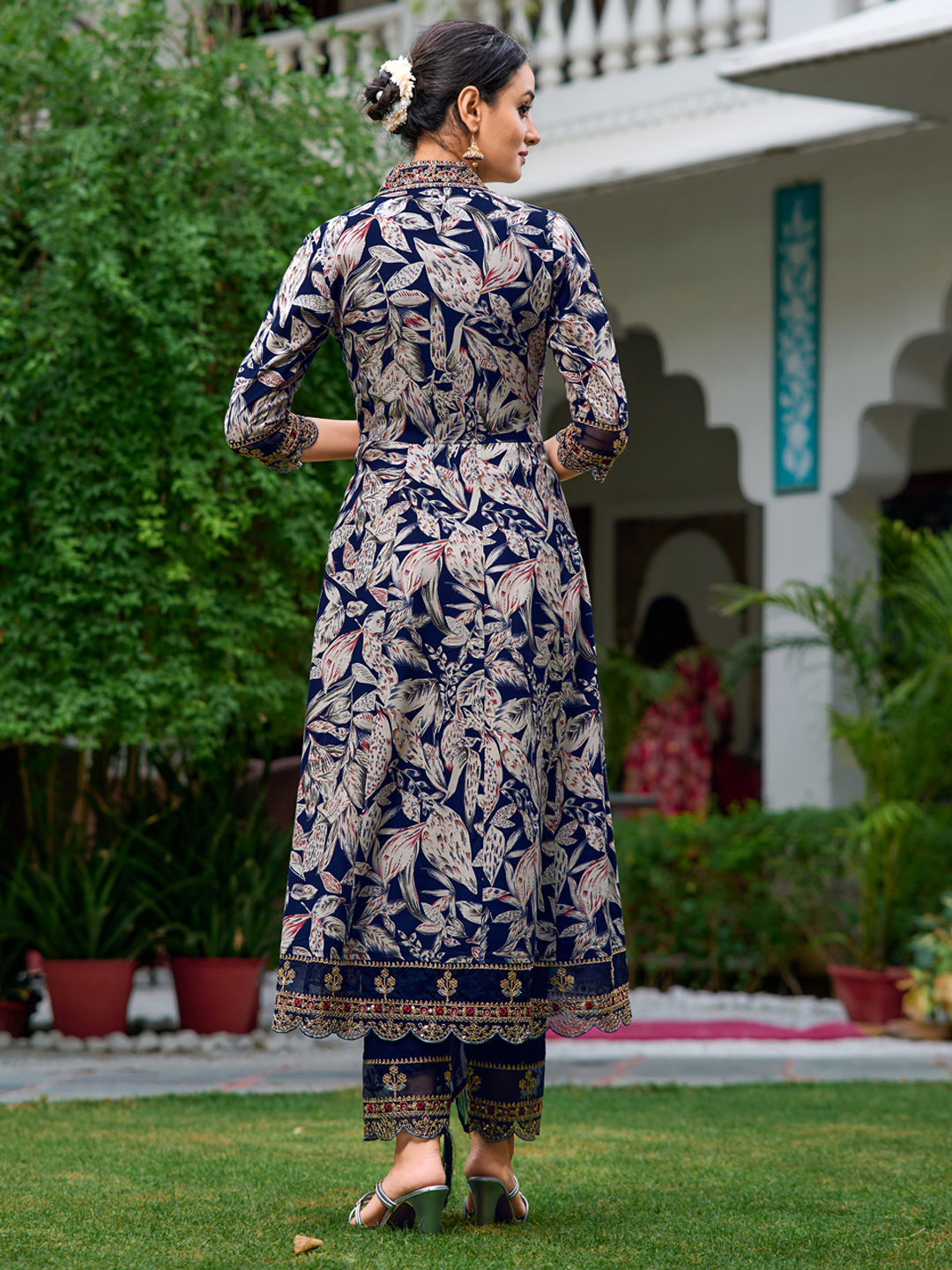 Blue color Salwar Kameez in Rayon fabric with Embroidered, Printed work