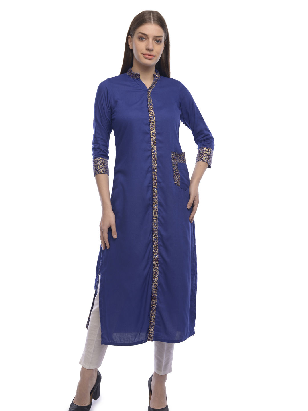 Blue color Salwar Kameez in Rayon fabric with Printed work