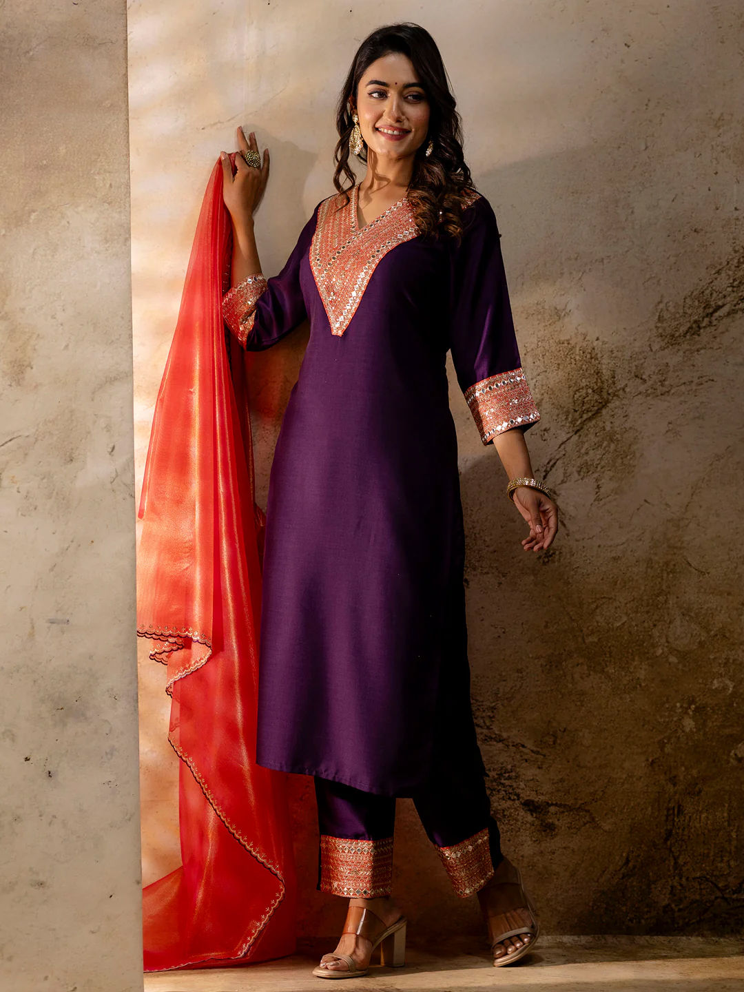 Purple and Violet color Salwar Kameez in Rayon fabric with Sequence, Thread work