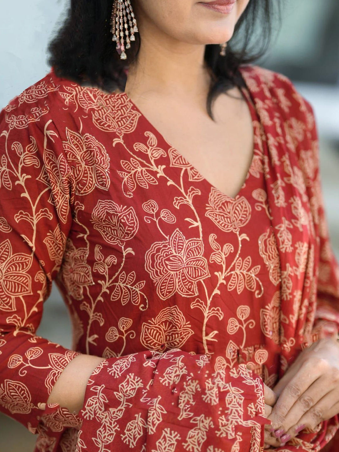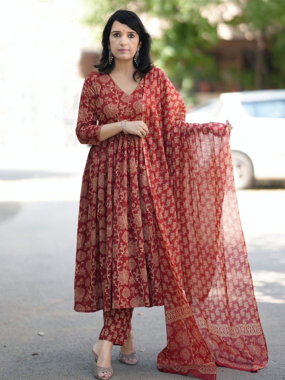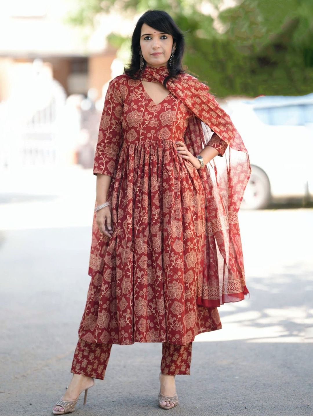 Red and Maroon color Salwar Kameez in Rayon fabric with Printed work