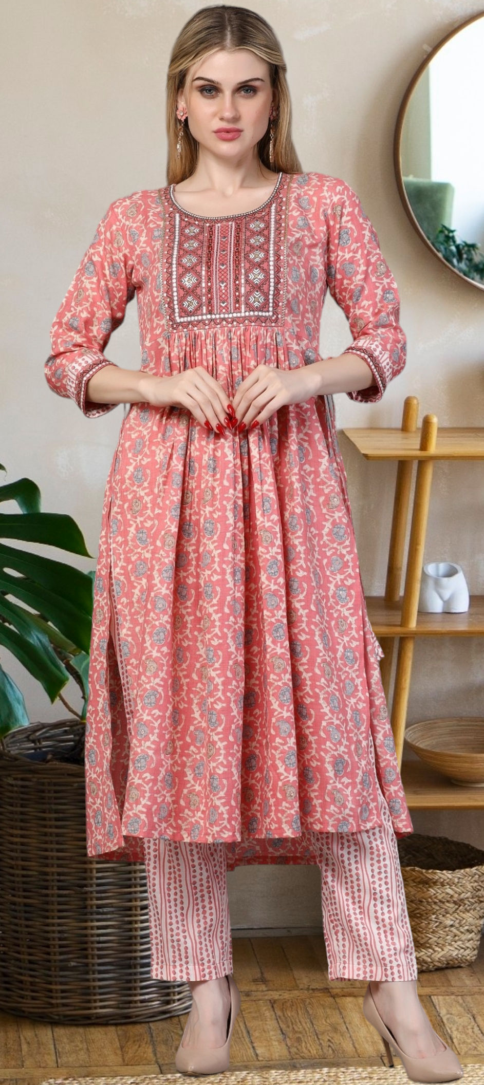 Pink and Majenta color Salwar Kameez in Rayon fabric with Embroidered, Thread work