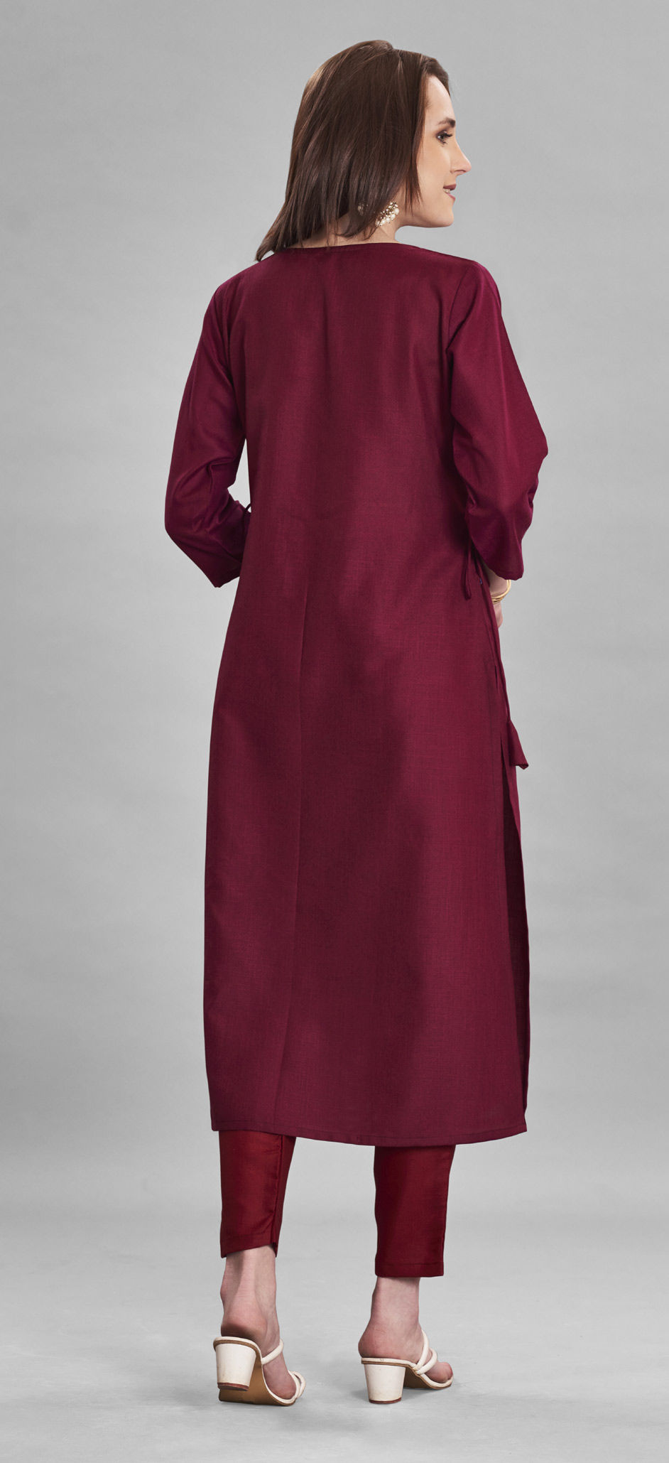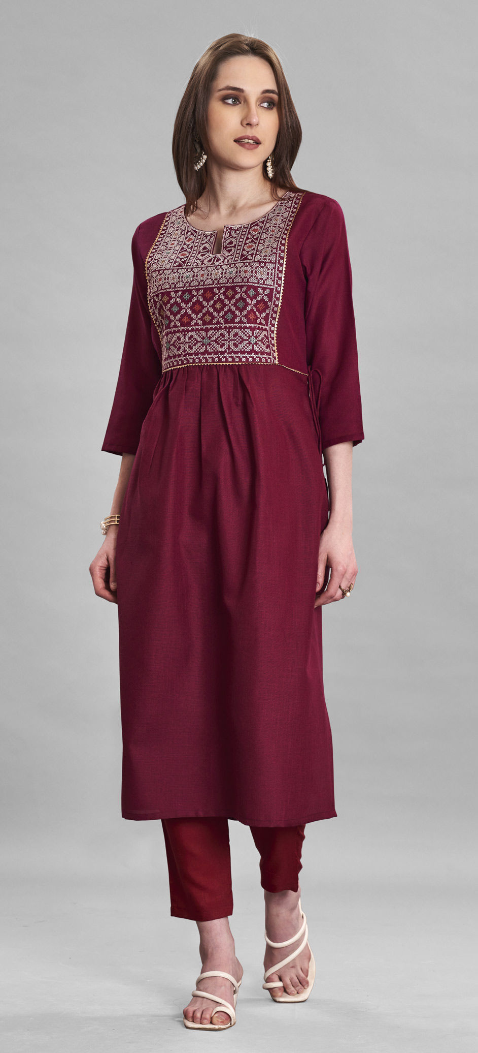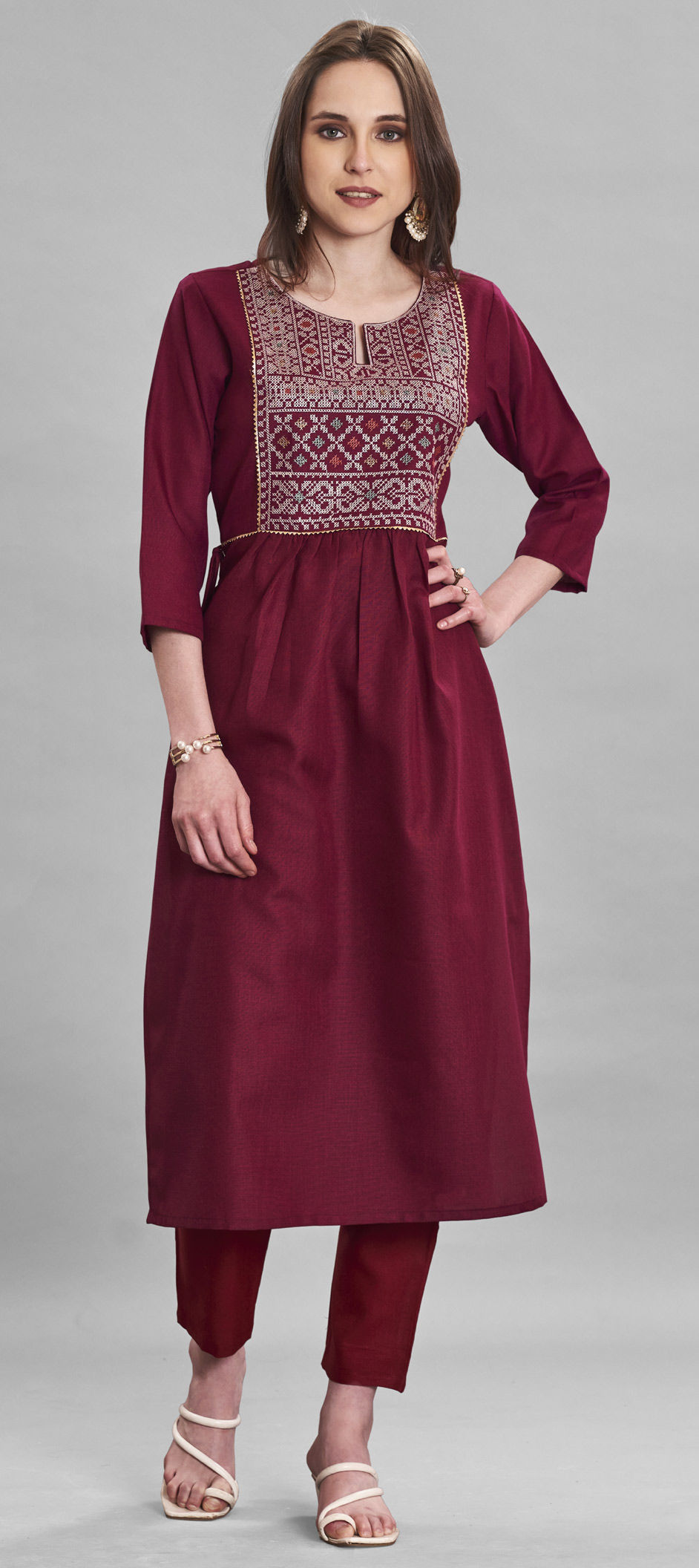 Red and Maroon color Salwar Kameez in Rayon fabric with Embroidered work