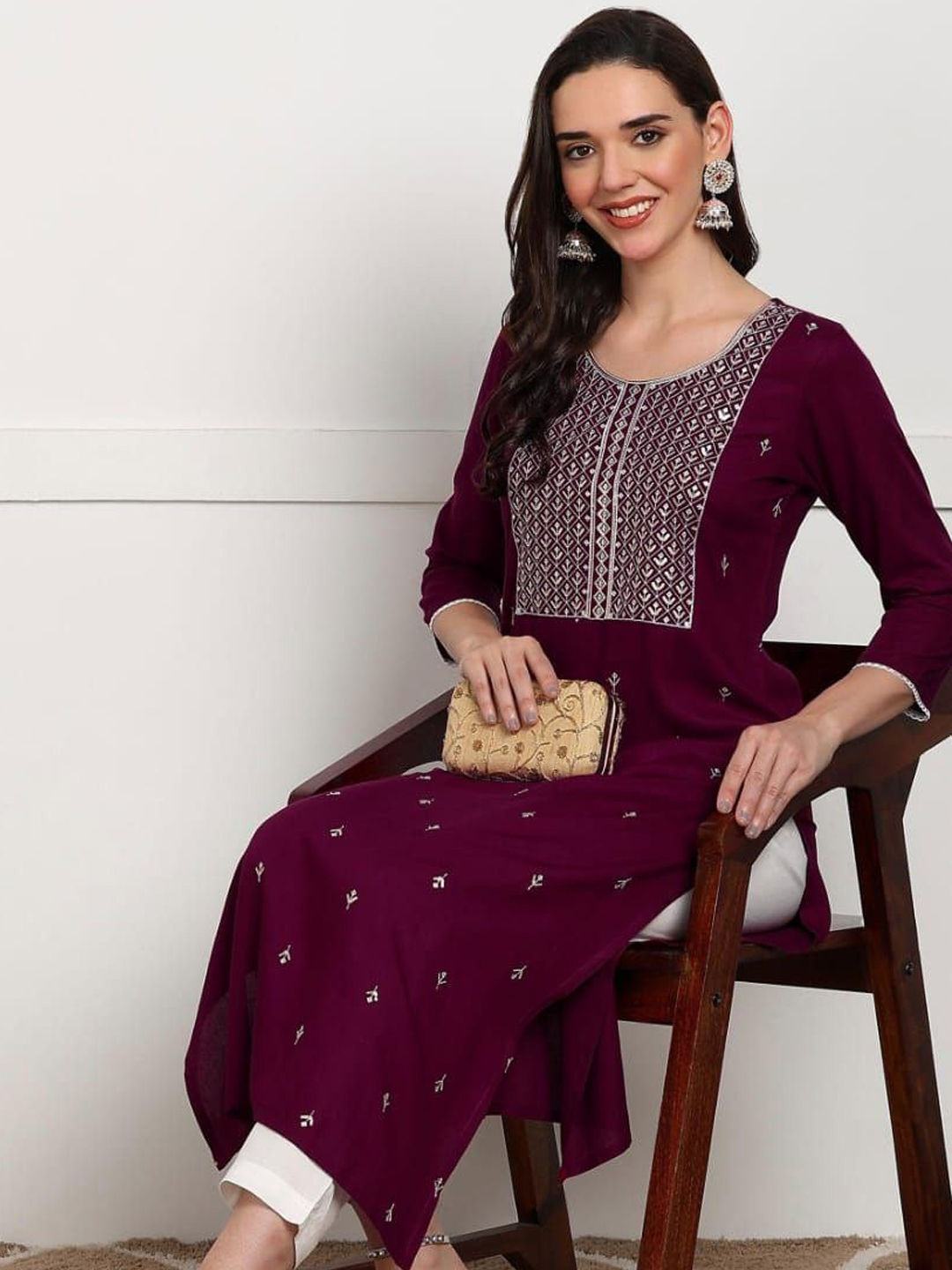 Rayon Casual Kurti in Purple and Violet with Embroidered work
