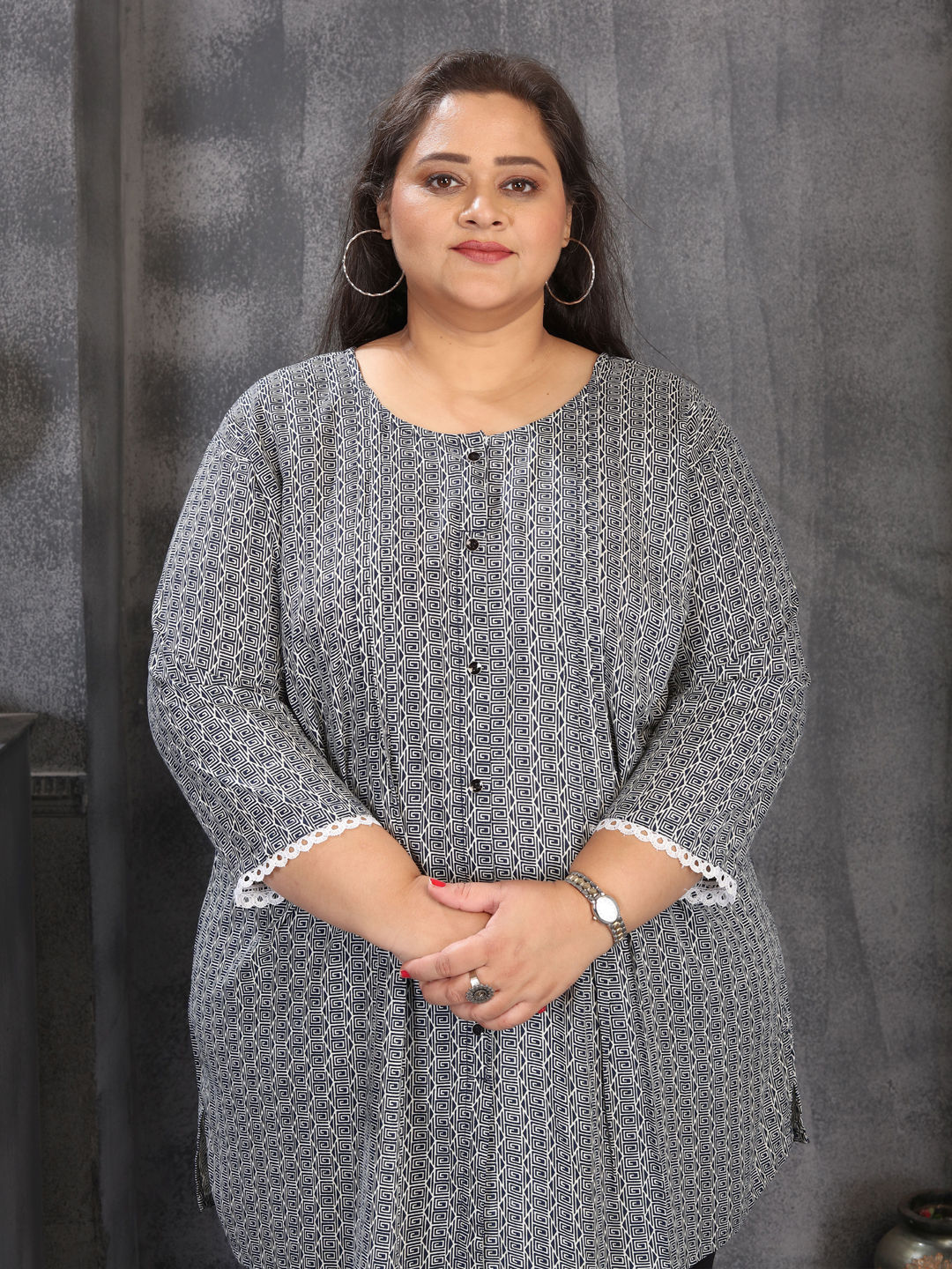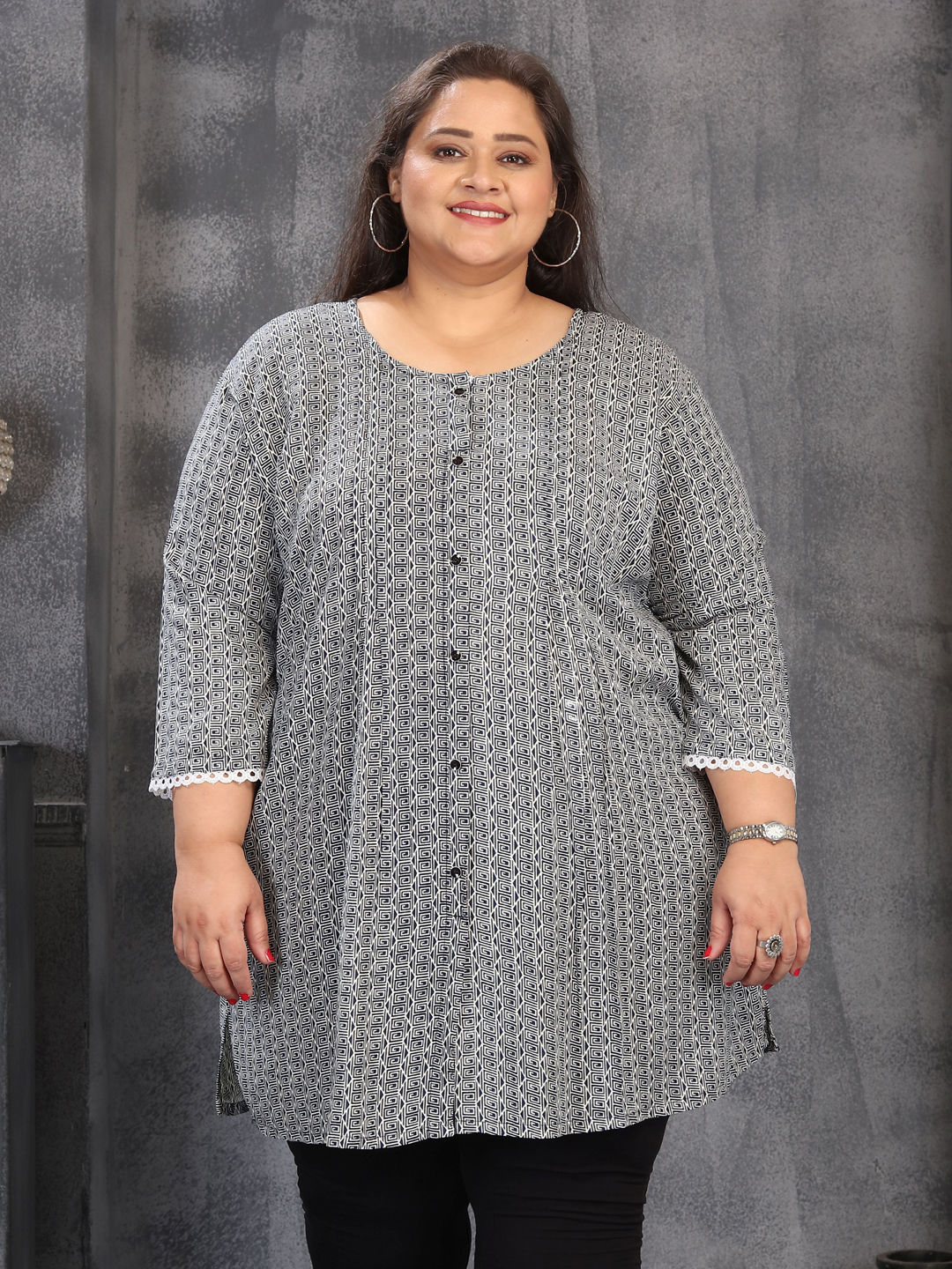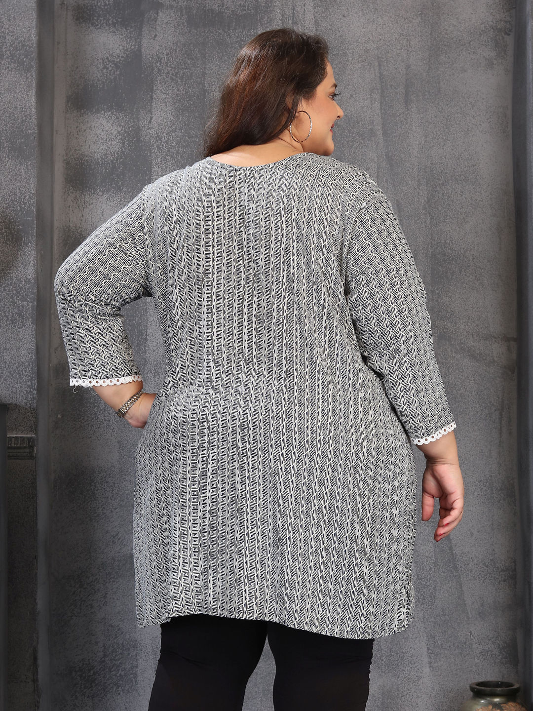 Black and Grey color Kurti in Rayon fabric with Printed work