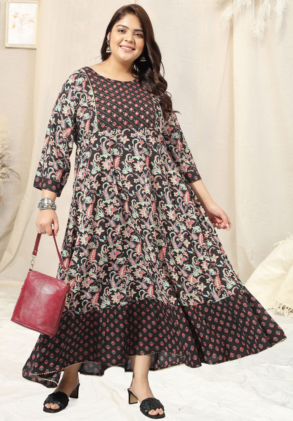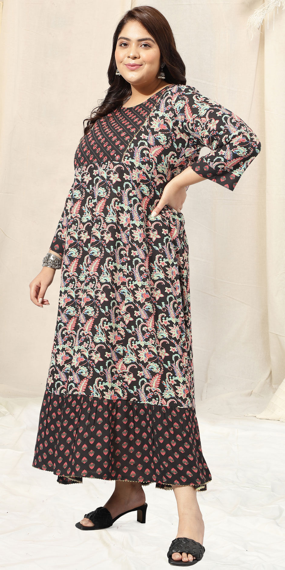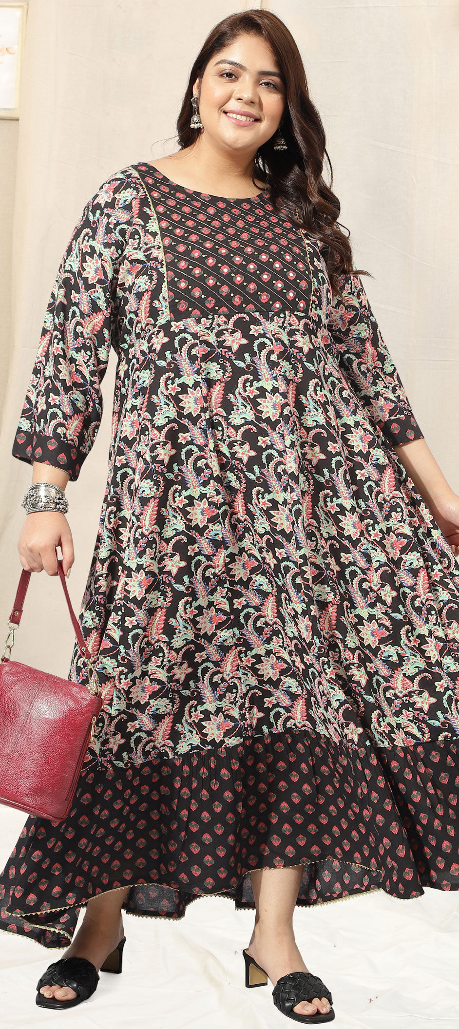 Black and Grey color Kurti in Rayon fabric with Floral, Gota Patti, Mirror, Sequence work