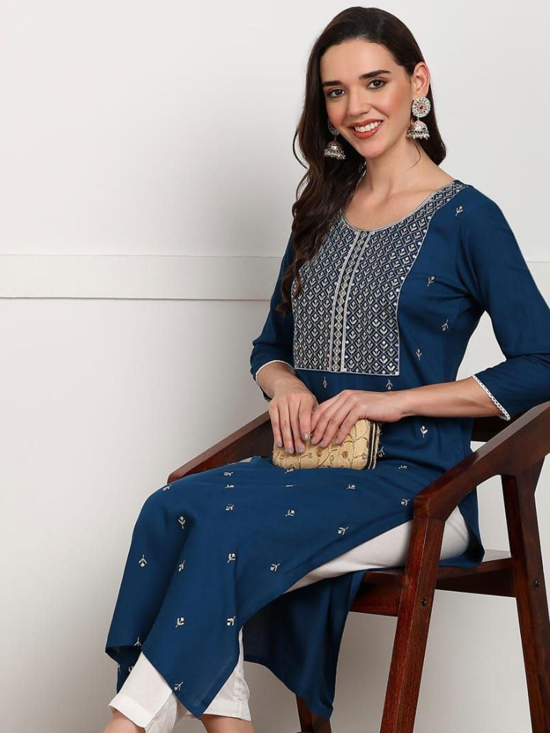 Rayon Casual Kurti in Purple and Violet with Embroidered work