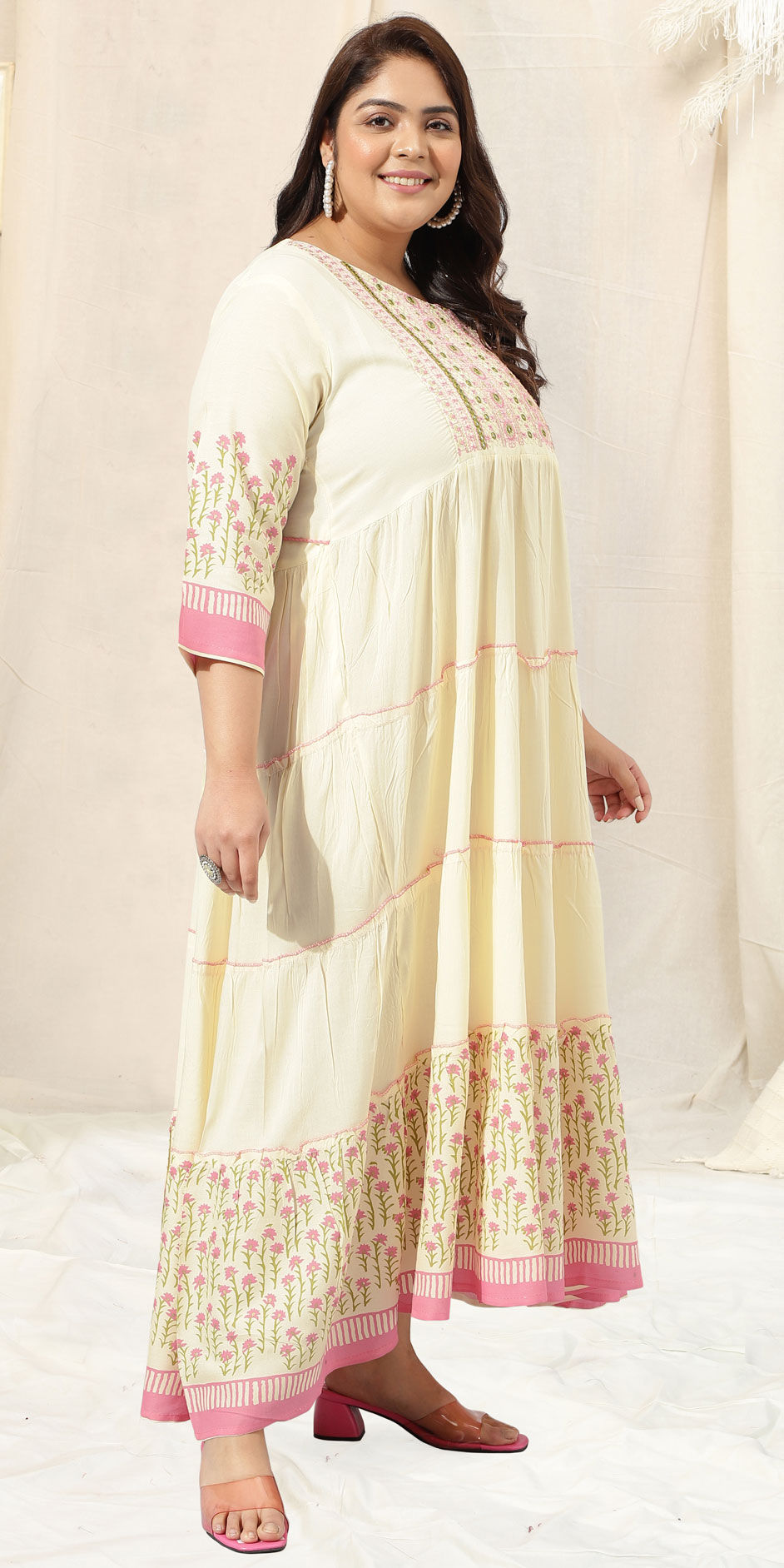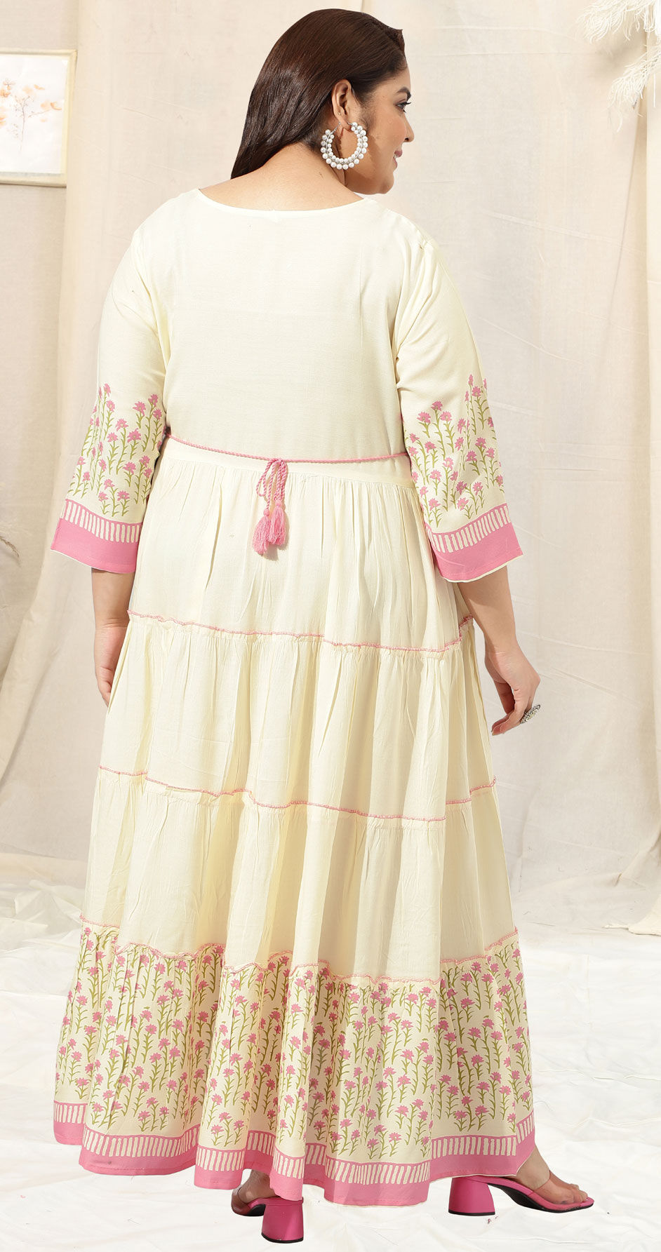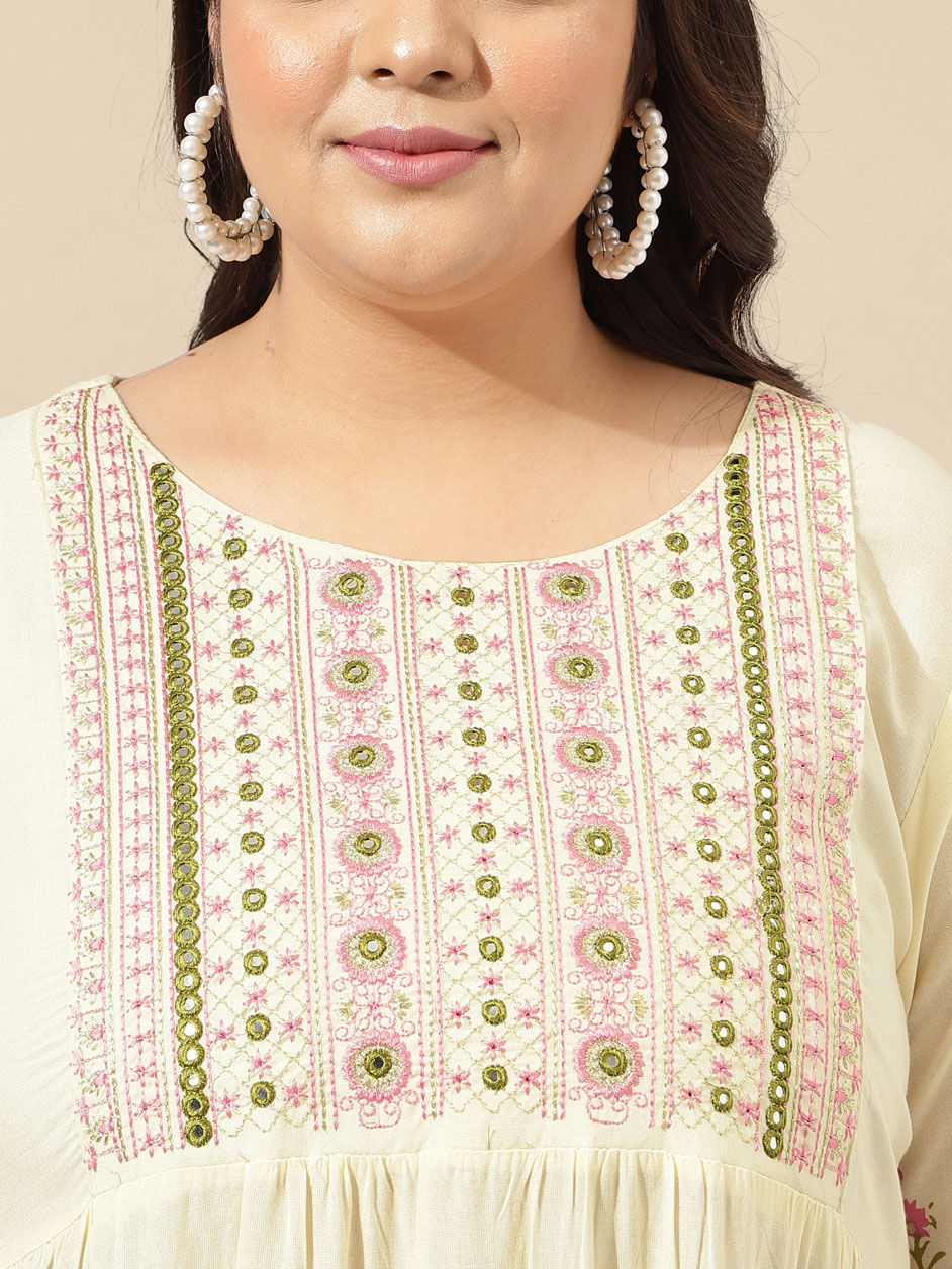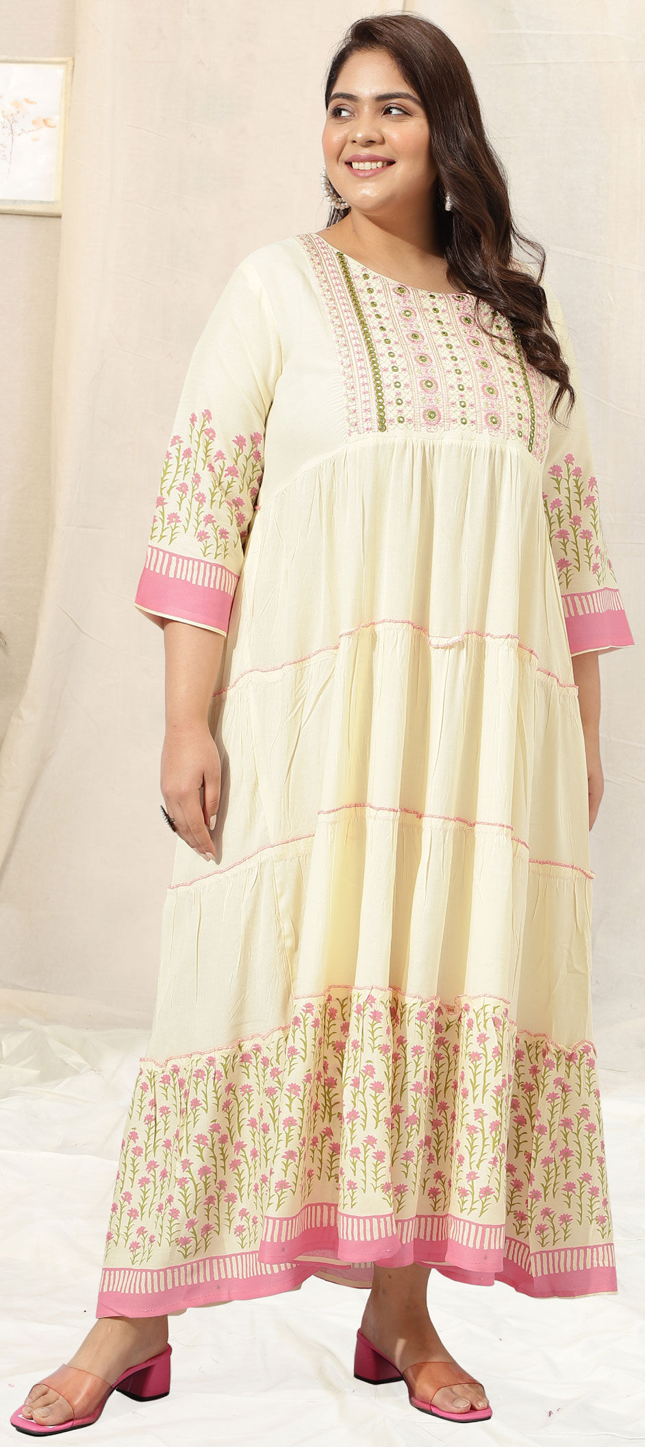 Pink and Majenta, White and Off White color Kurti in Rayon fabric with Floral, Gota Patti, Mirror, Sequence work