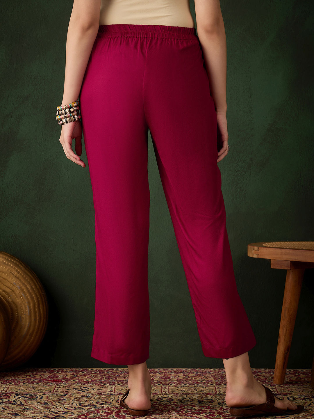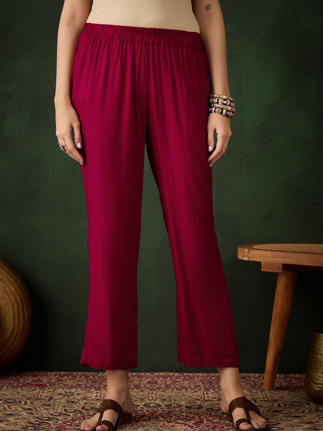 Red and Maroon color Palazzo in Rayon fabric with Embroidered work